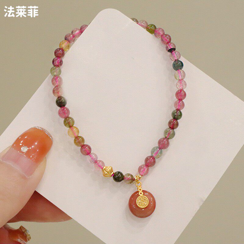 Радужный турмалиновый браслет, агатовый защитный амулет, пряжка, брендовая подвеска, небольшое дизайнерское ювелирное украшение, аксессуар, тренд сезона