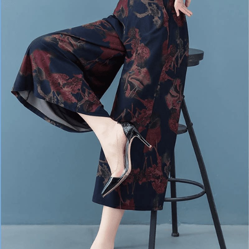 Тонкие летние штаны для матери, шелковая юбка, высокая талия, в западном стиле, цветочный принт