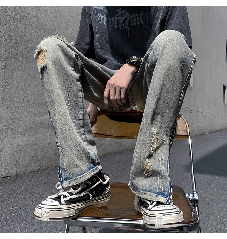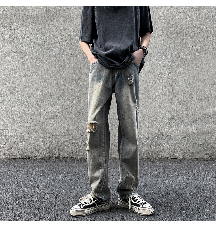 Европейские и американские брюки в стиле хип-хоп, модный бренд, красивые уличные мужчины, ретро-винтажные брюки с разрезами на ногах, рваные джинсы, модные