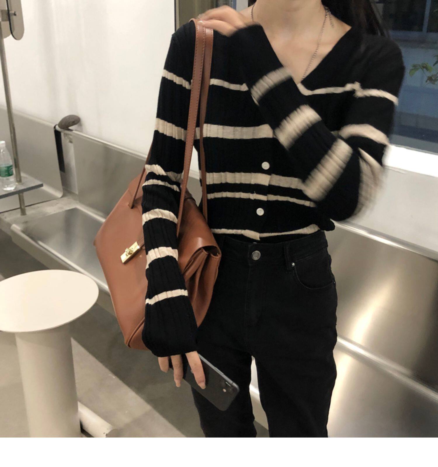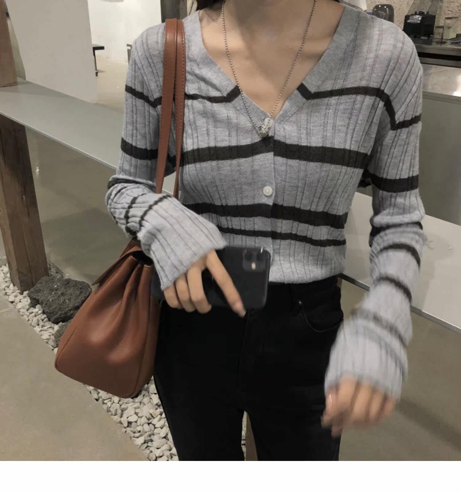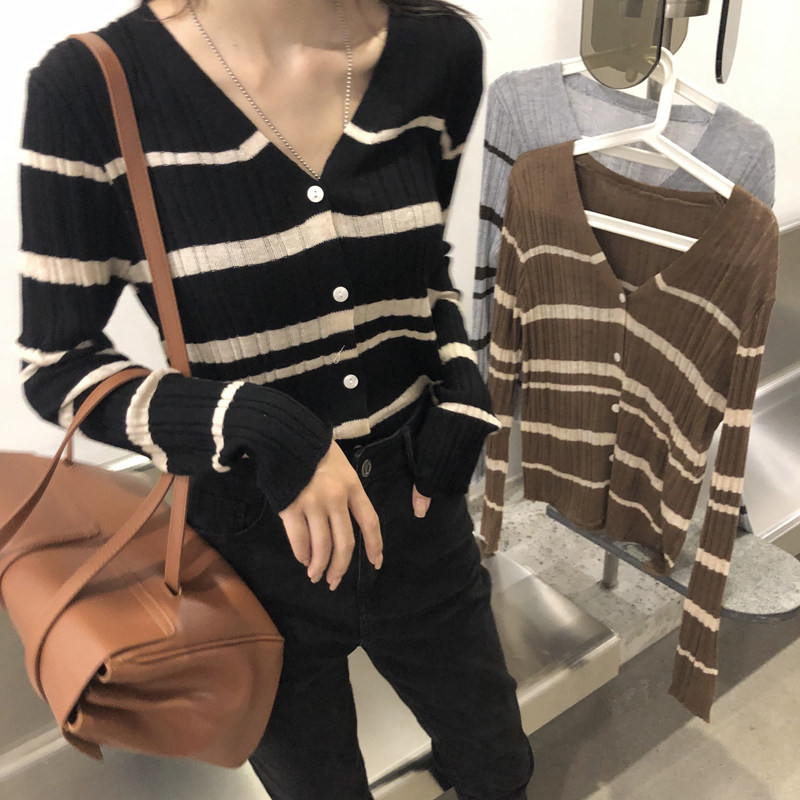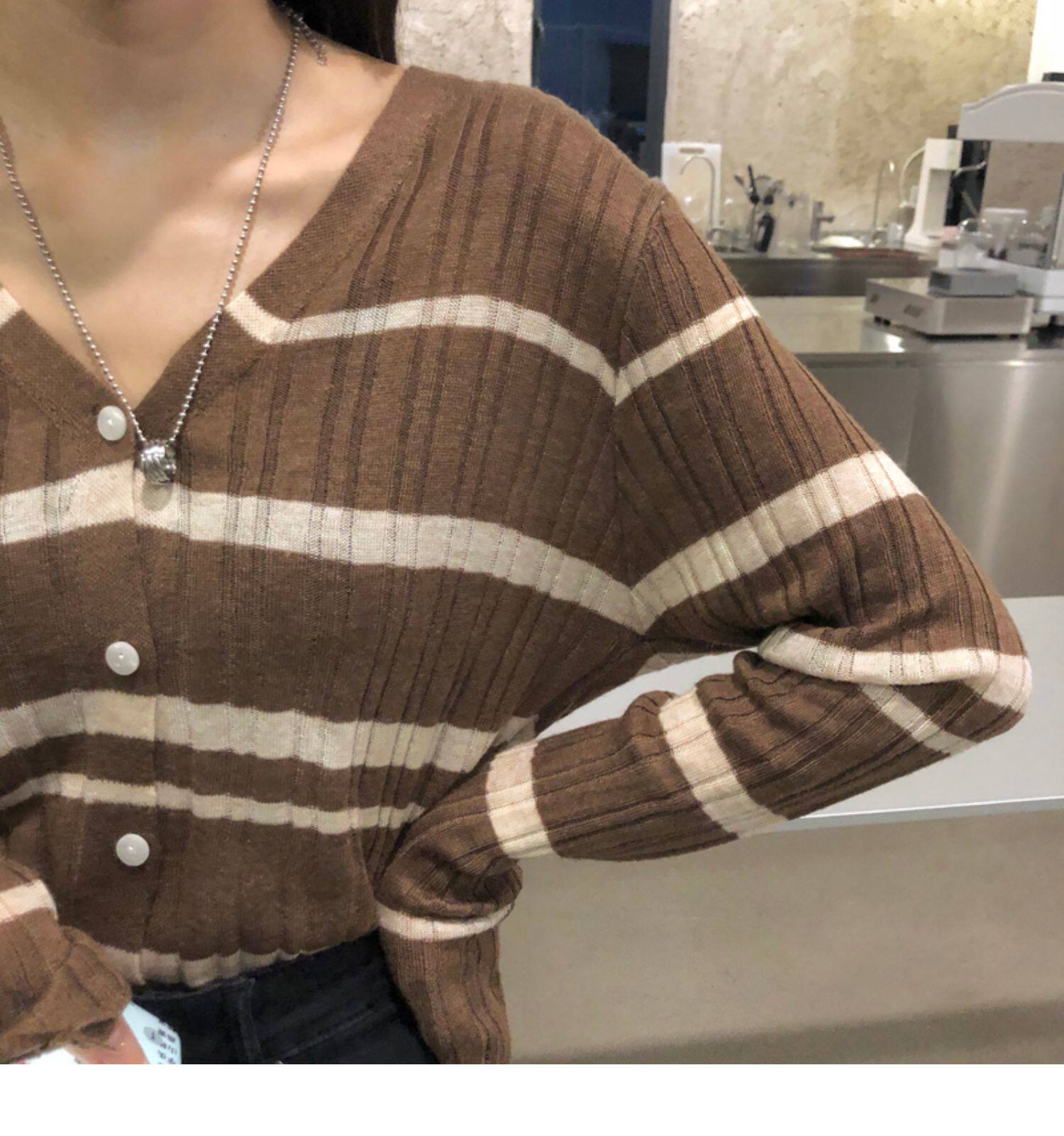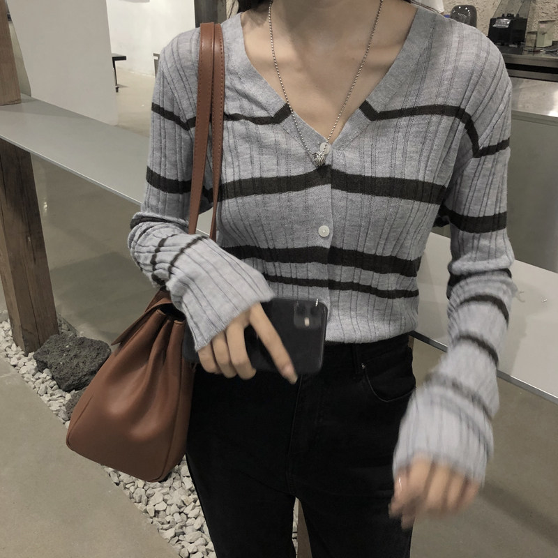 Осенняя ретро дизайнерская футболка, трикотажный приятный телу лонгслив, французский стиль, V-образный вырез, тренд сезона
