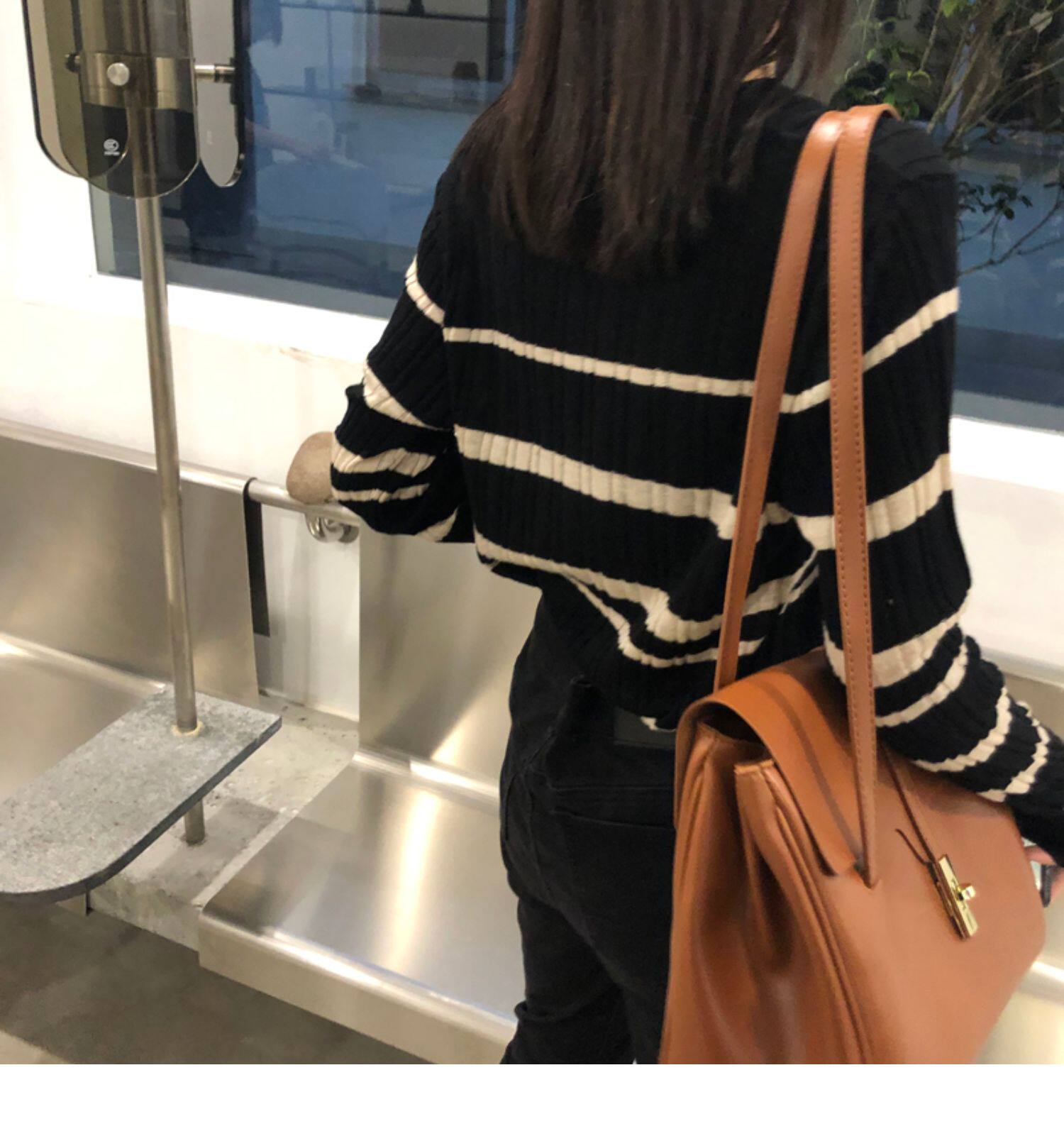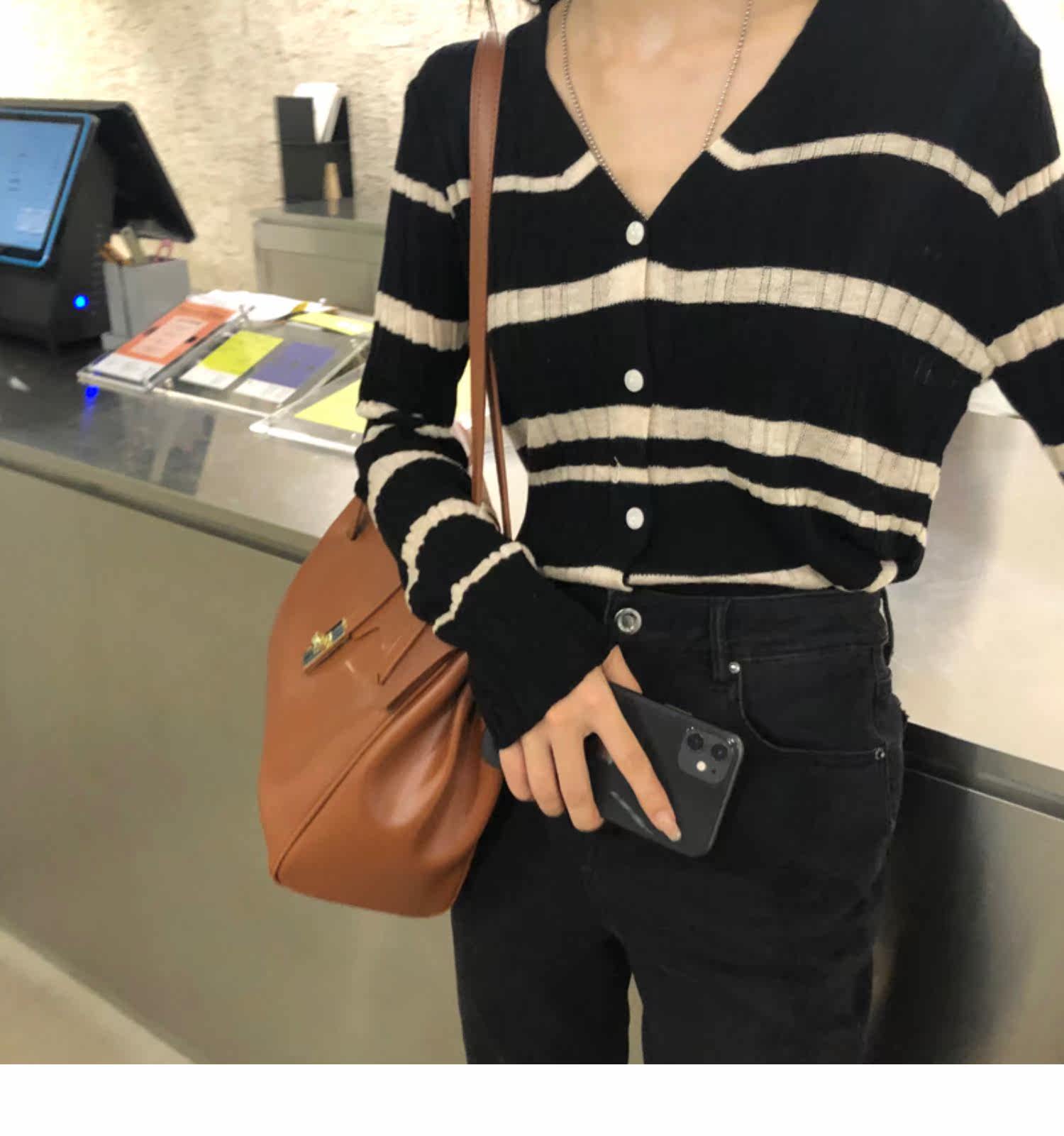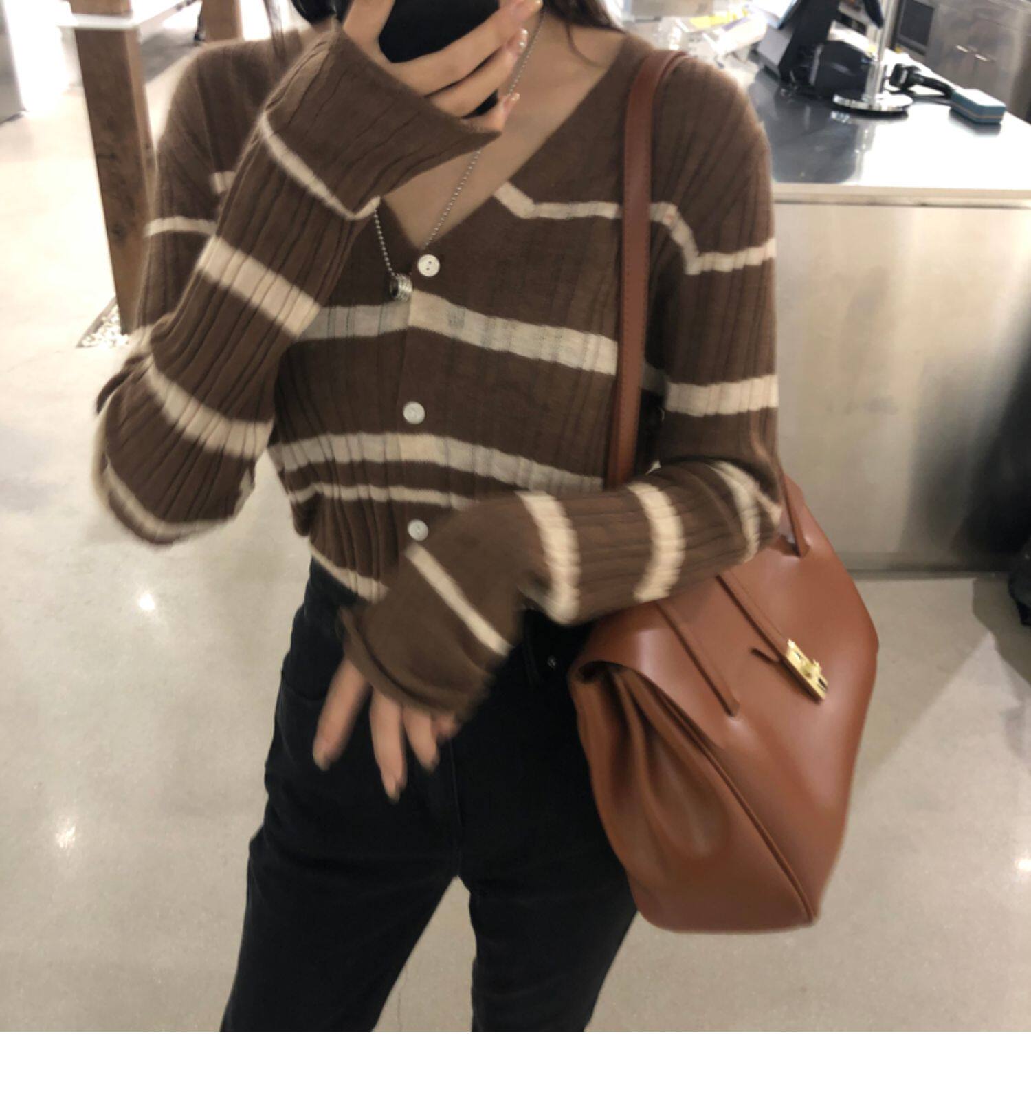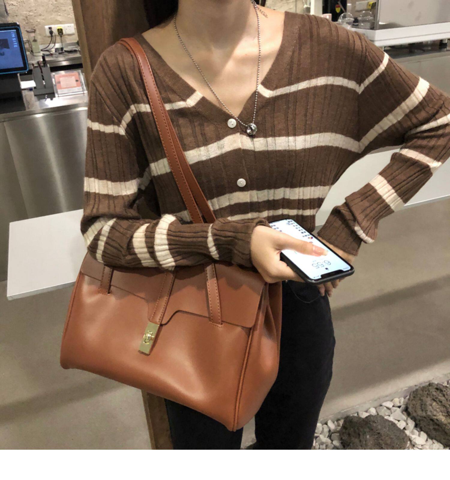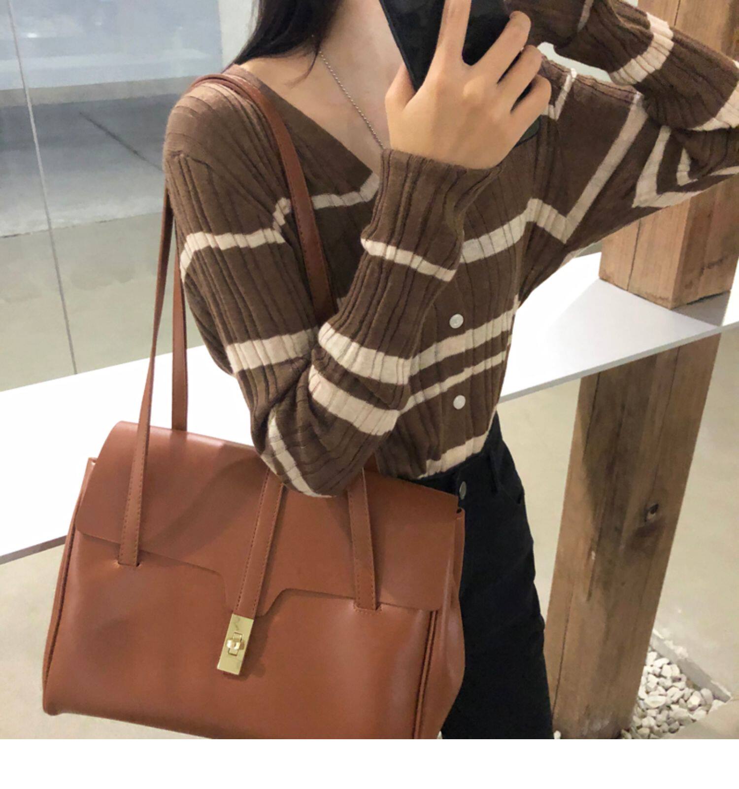 Осенняя ретро дизайнерская футболка, трикотажный приятный телу лонгслив, французский стиль, V-образный вырез, тренд сезона