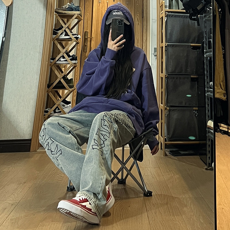 Дизайнерские джинсы, штаны, европейский стиль, изысканный стиль, тренд сезона, оверсайз, с вышивкой, свободный прямой крой