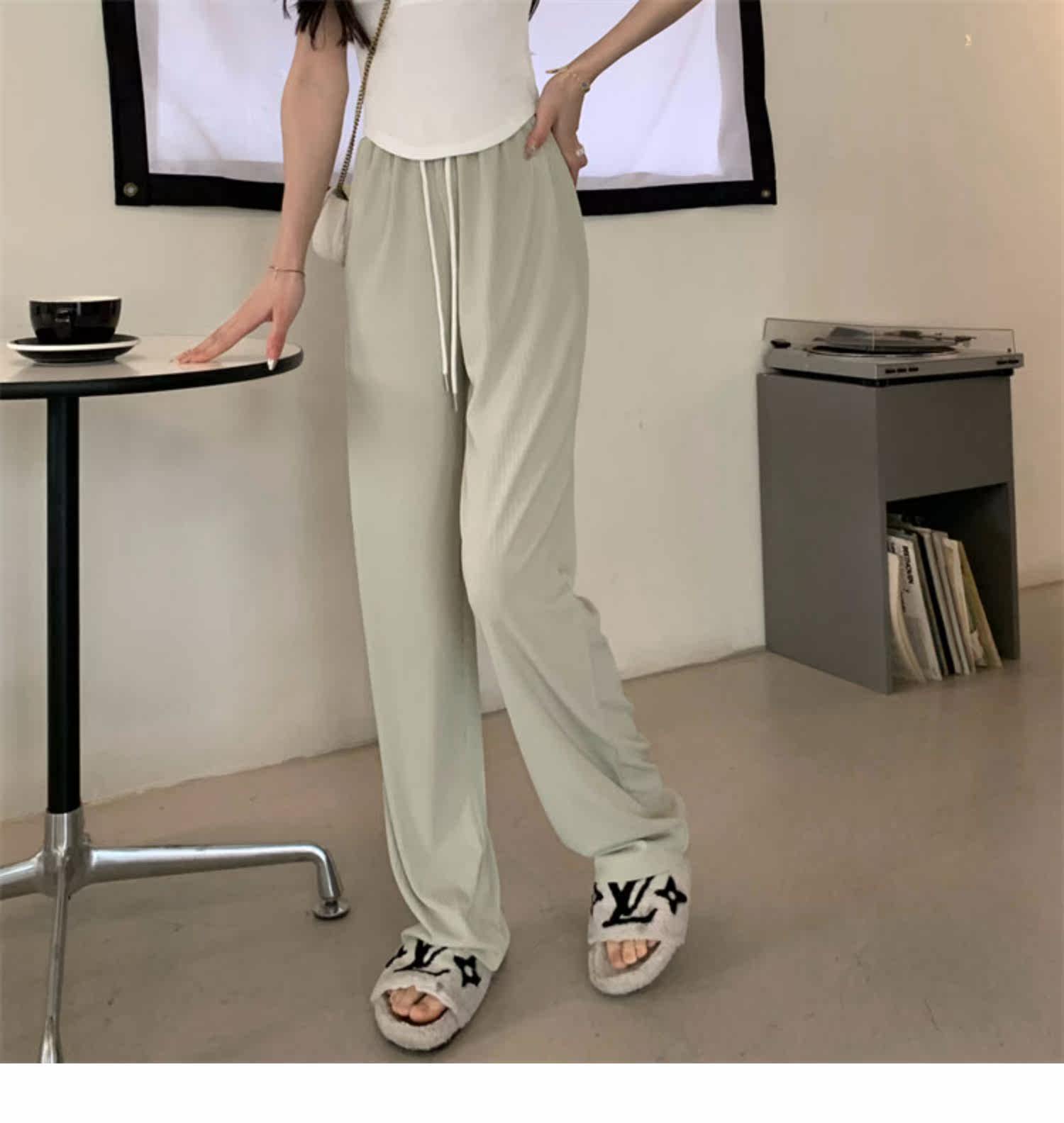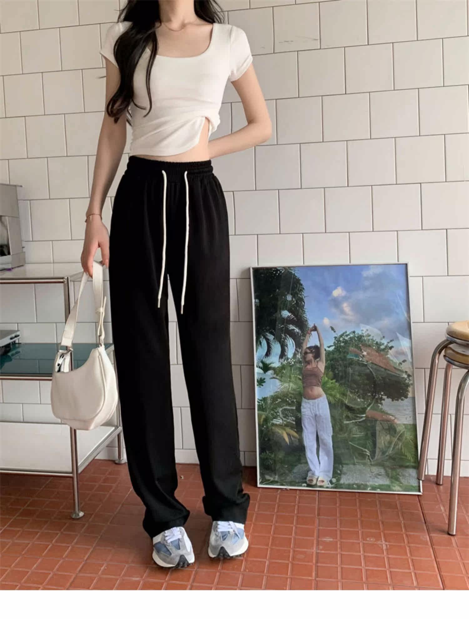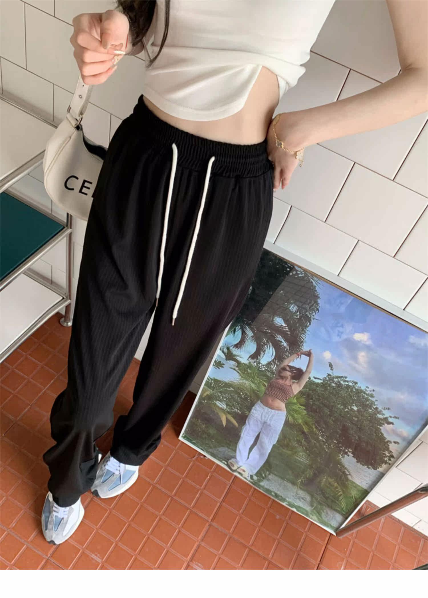 Осенние штаны для отдыха, эластичная талия, на шнурках, высокая талия, свободный прямой крой