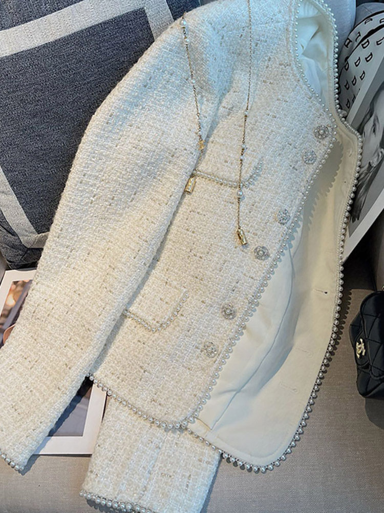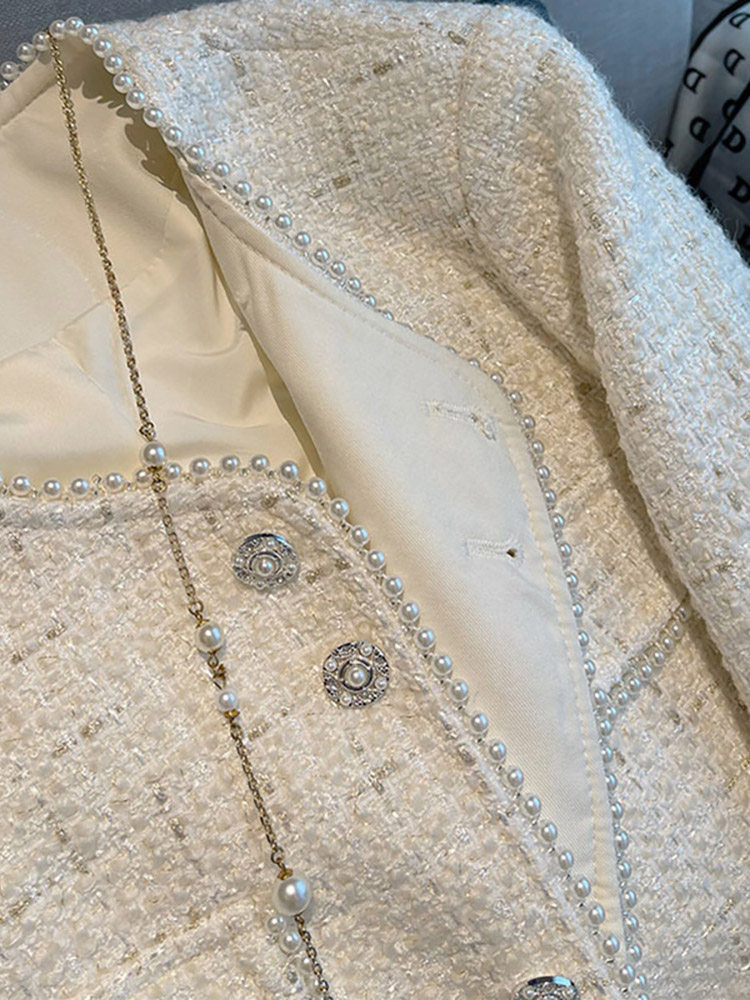 Весенняя белая куртка, коллекция 2023, в стиле Шанель