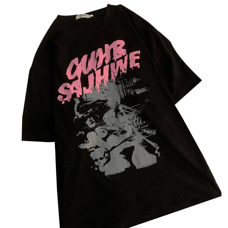 Хлопковая ретро летняя футболка с коротким рукавом для отдыха в стиле хип-хоп для школьников, трендовая брендовая парная одежда для влюбленных, в американском стиле, оверсайз
