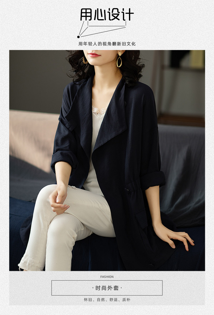 三桔 Плащ, осенняя длинная куртка, большой размер, городской стиль, свободный крой, средней длины
