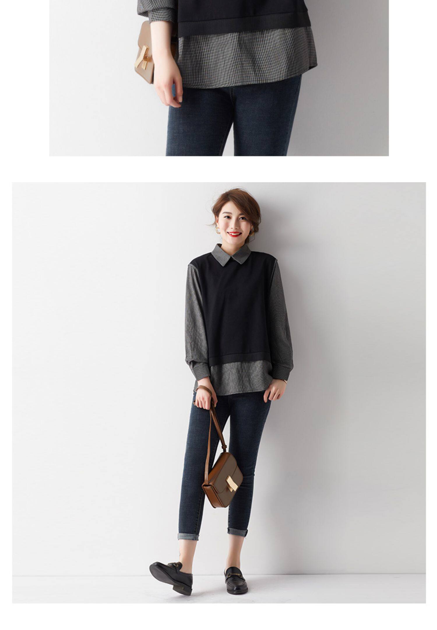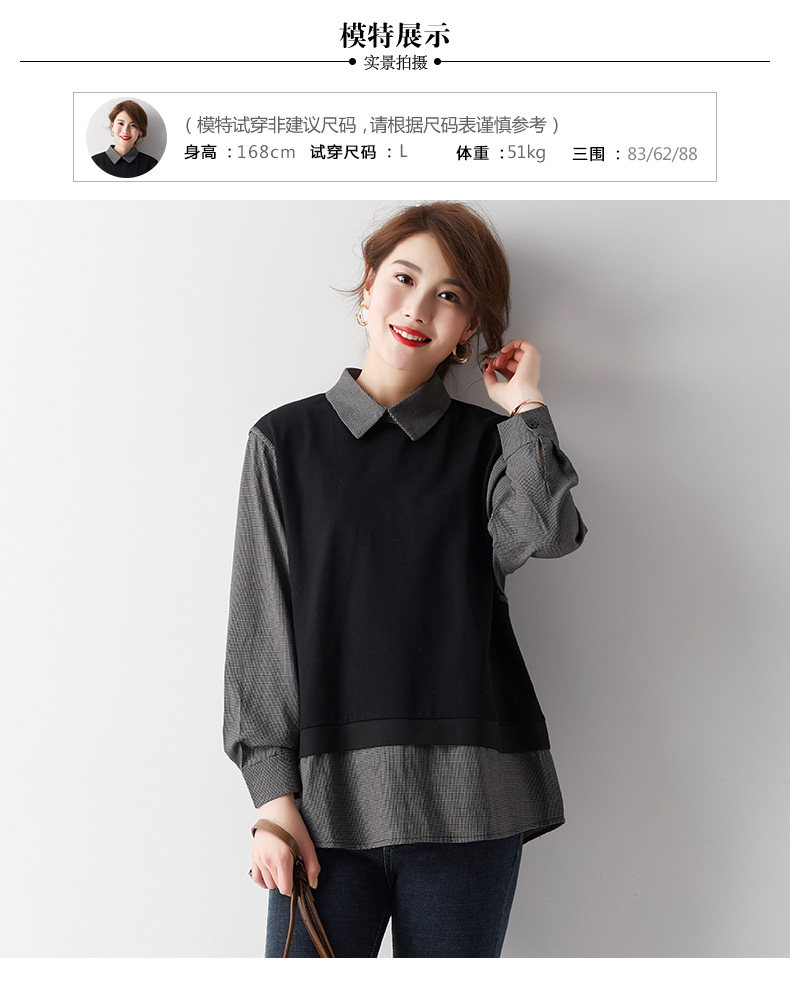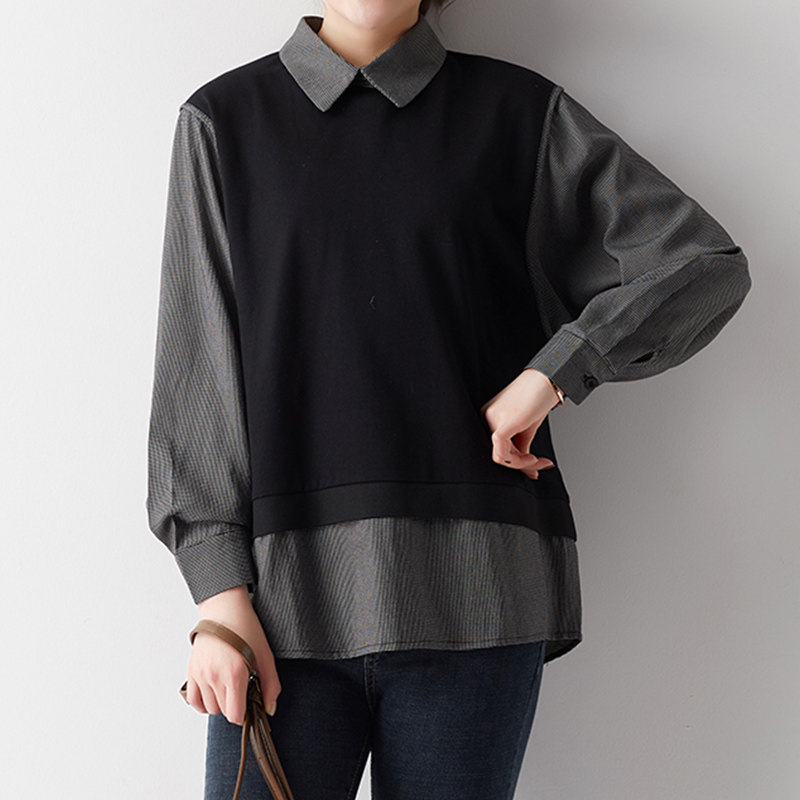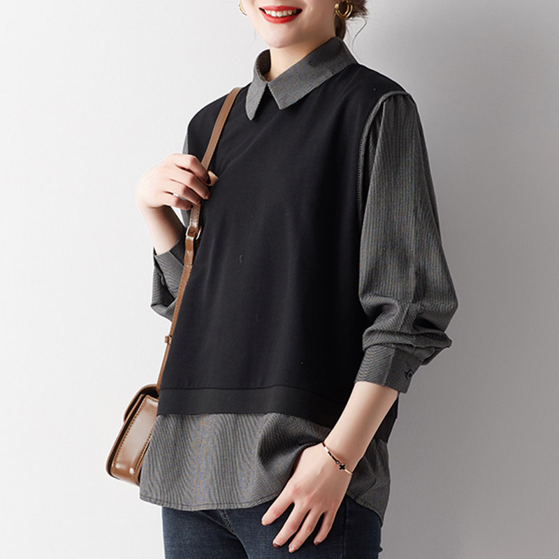 三桔 Рубашка, осенний свитшот, большой размер, 2023, по фигуре, свободный крой