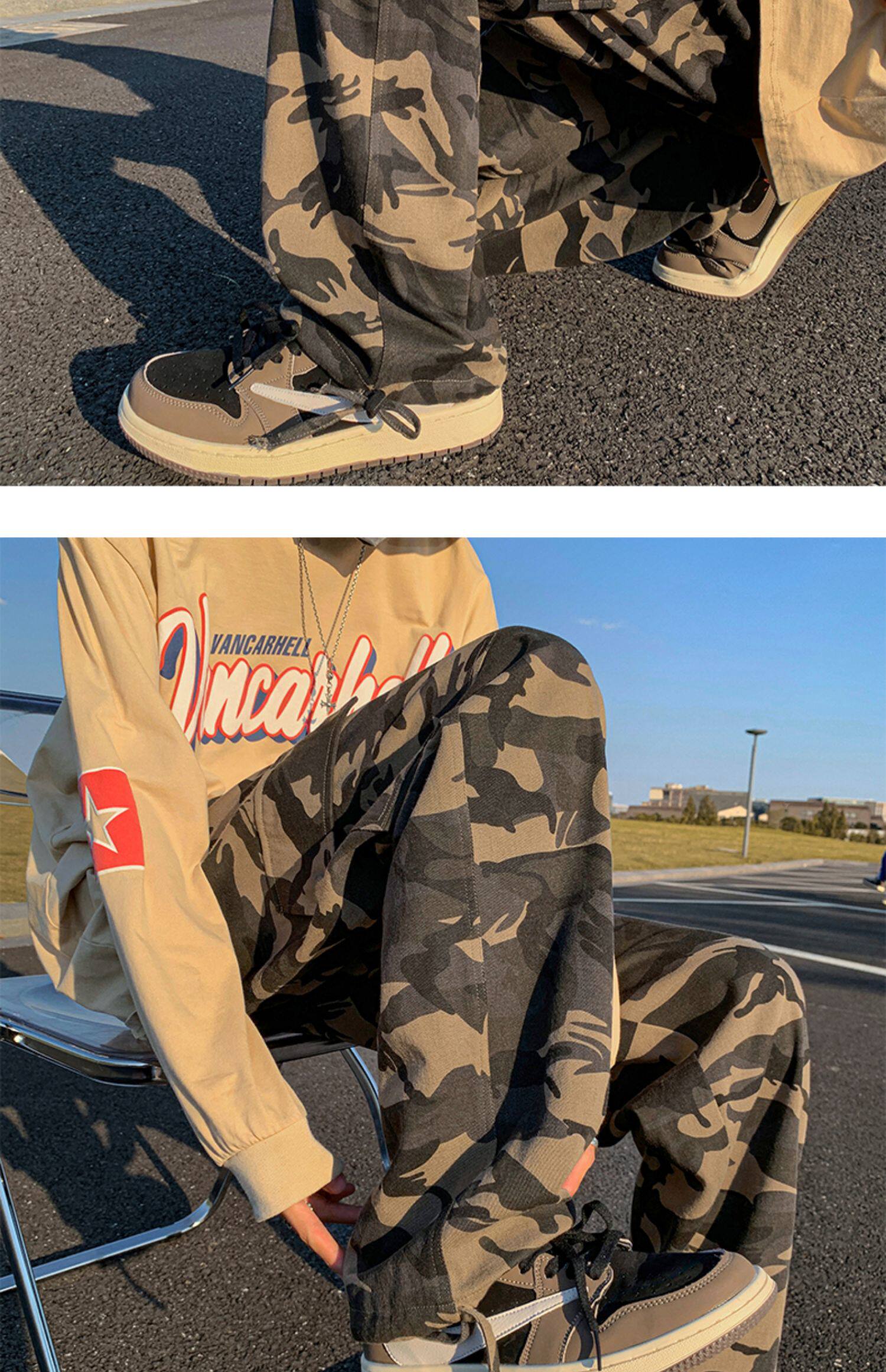 Камуфляжные сексуальные штаны, в американском стиле, изысканный стиль, оверсайз