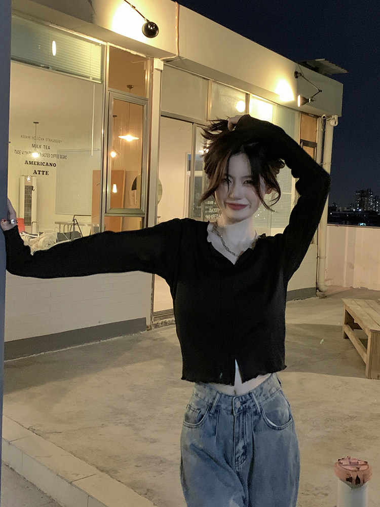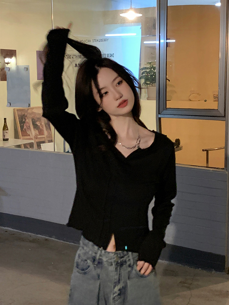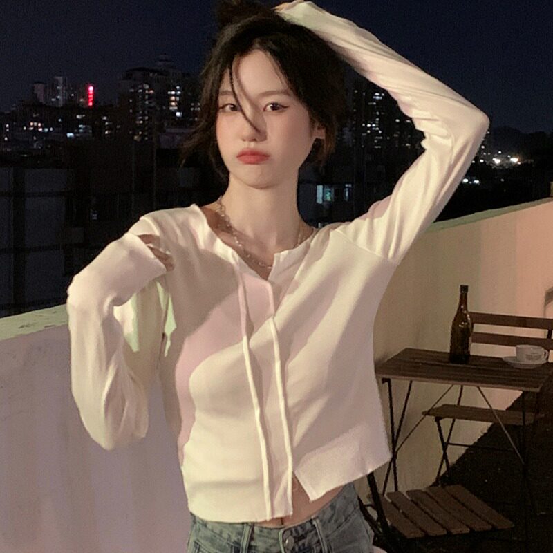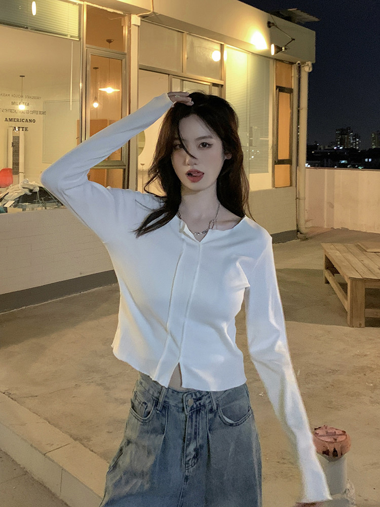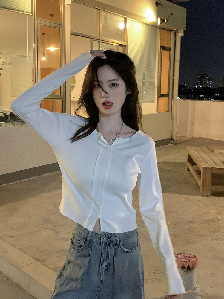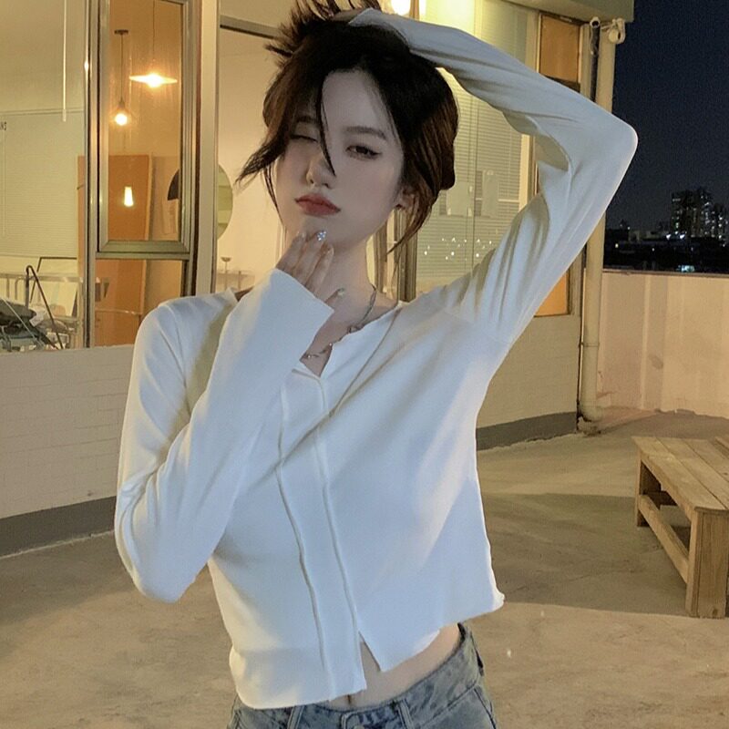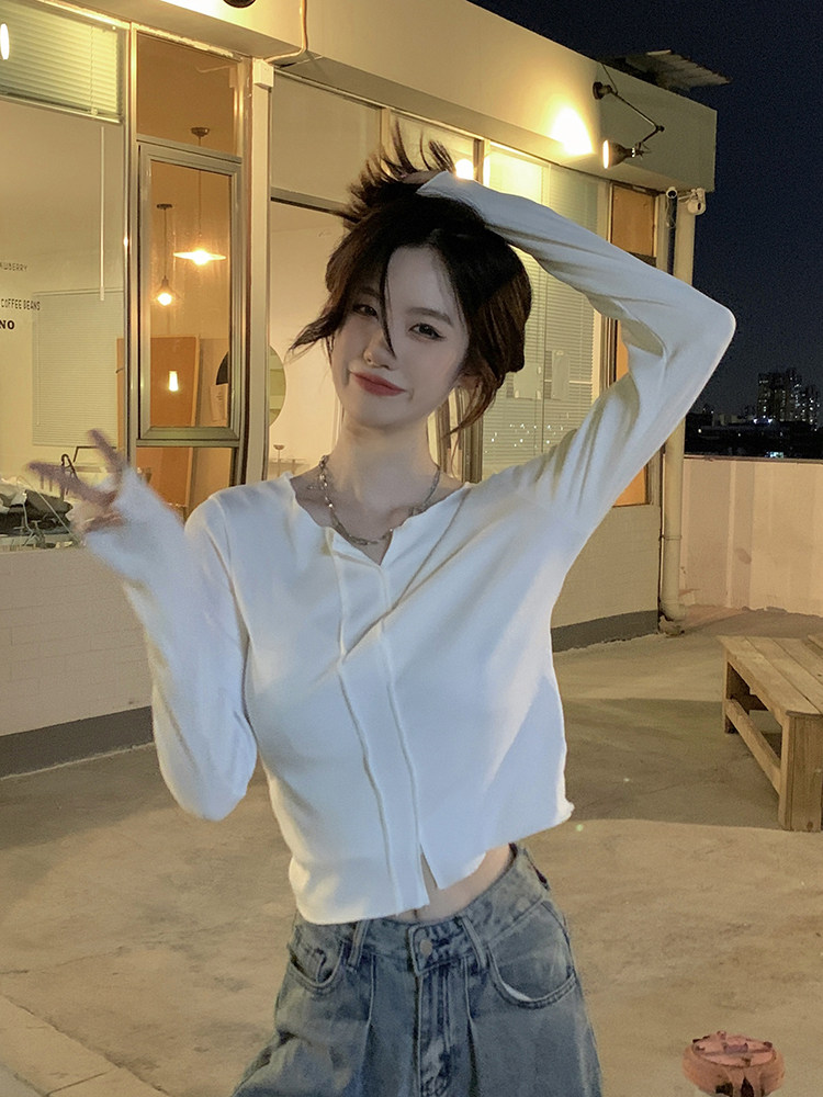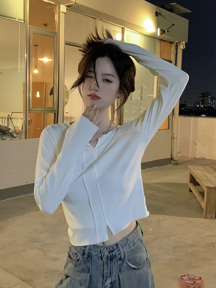 Белый сексуальный хлопковый короткий базовый лонгслив, облегающий крой, осенний