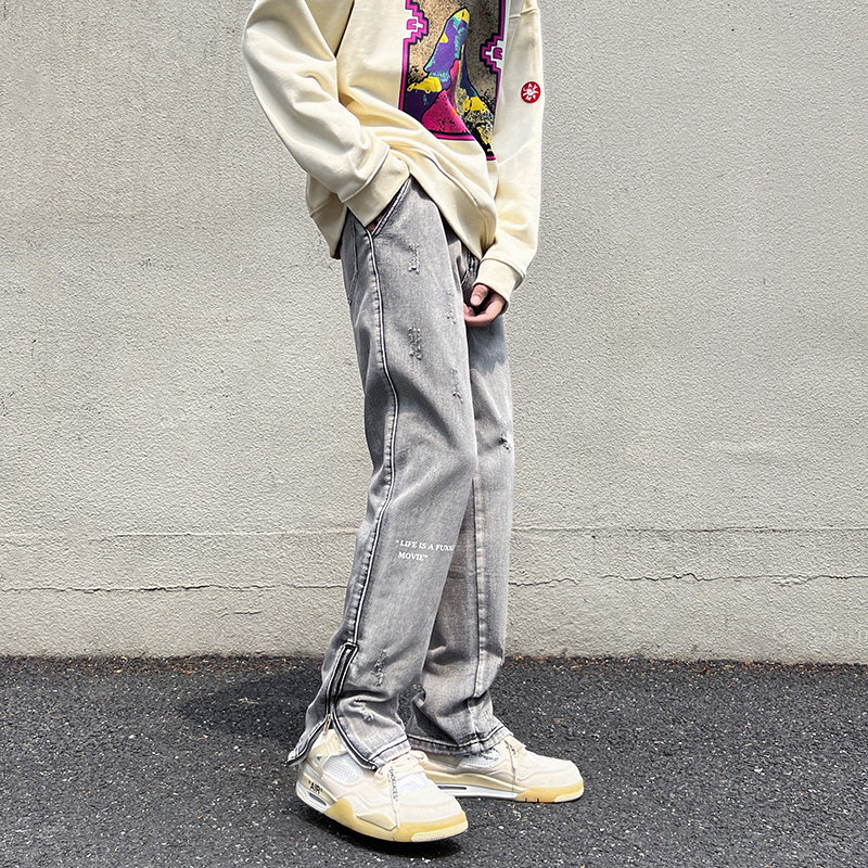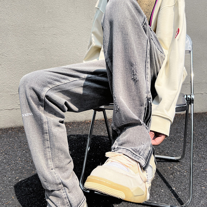 Брендовые штаны, дизайнерские джинсы с молнией, в американском стиле, тренд сезона, изысканный стиль, на молнии