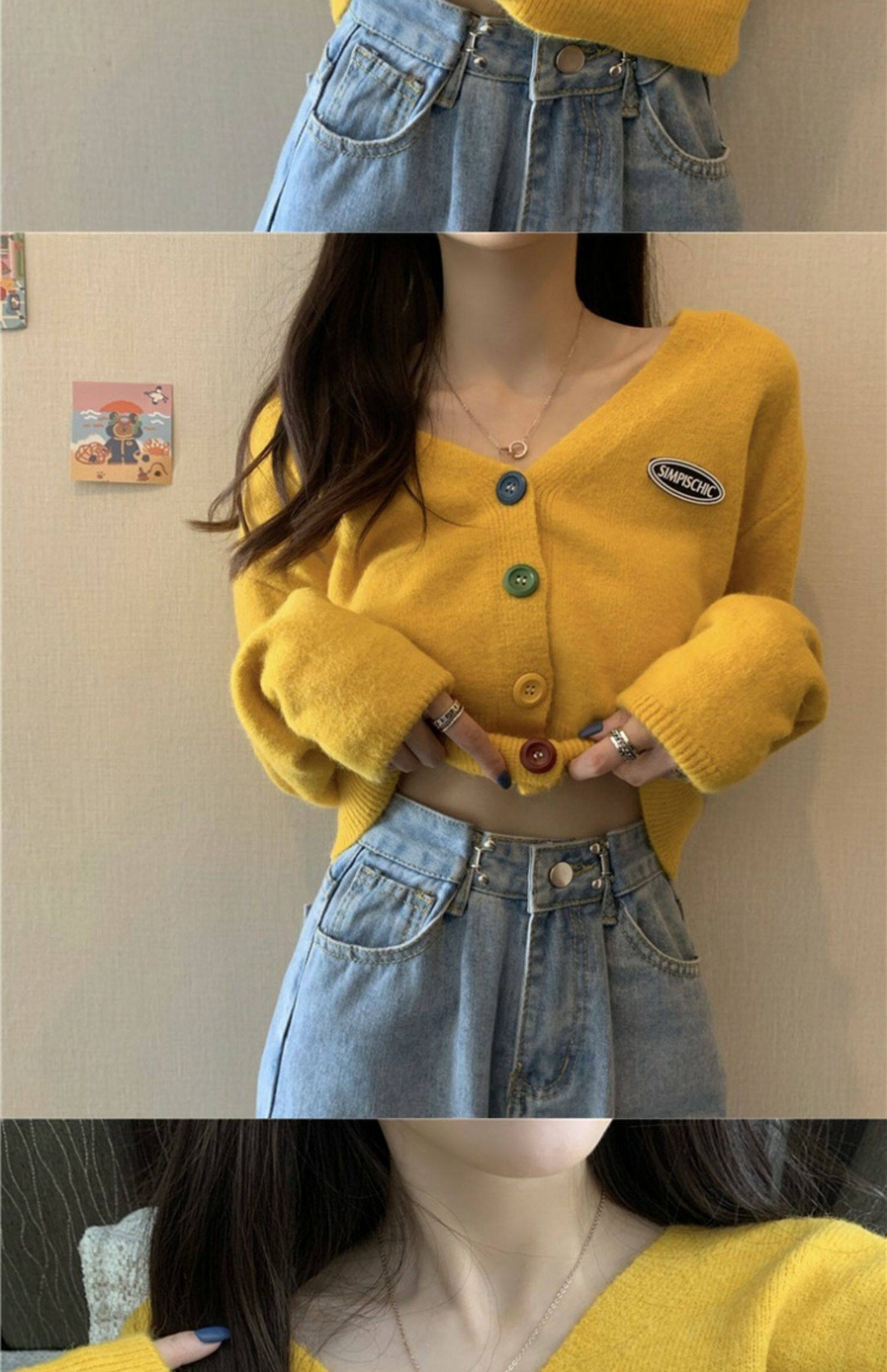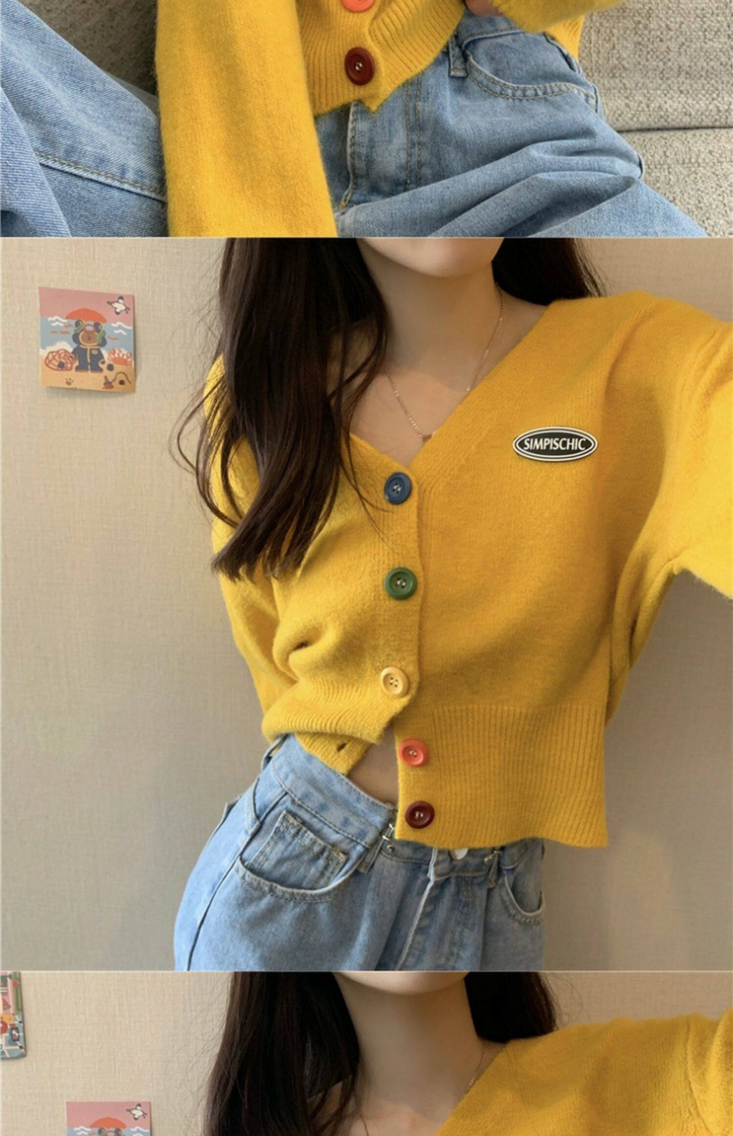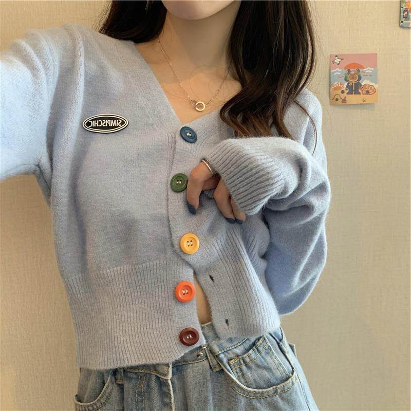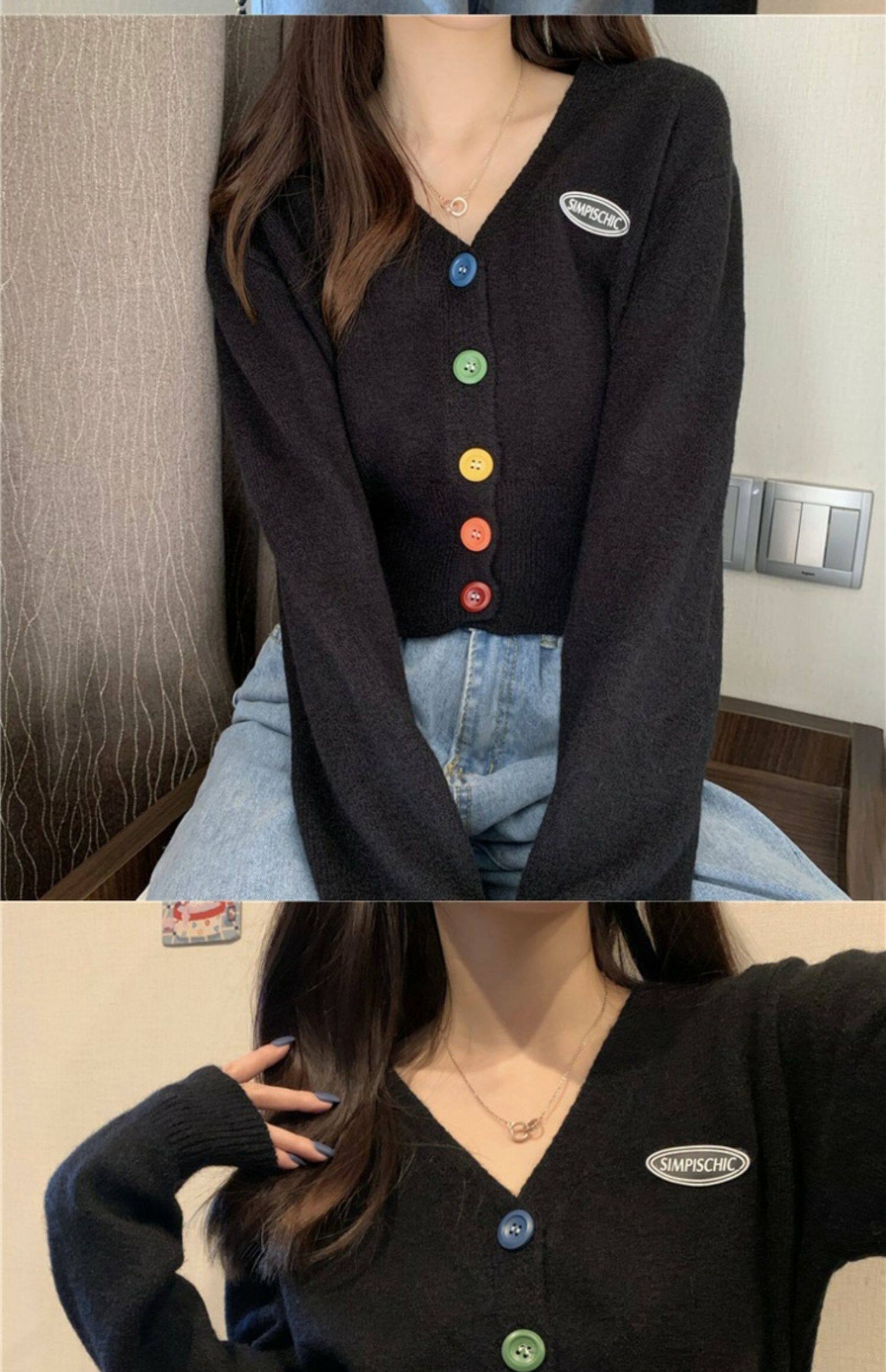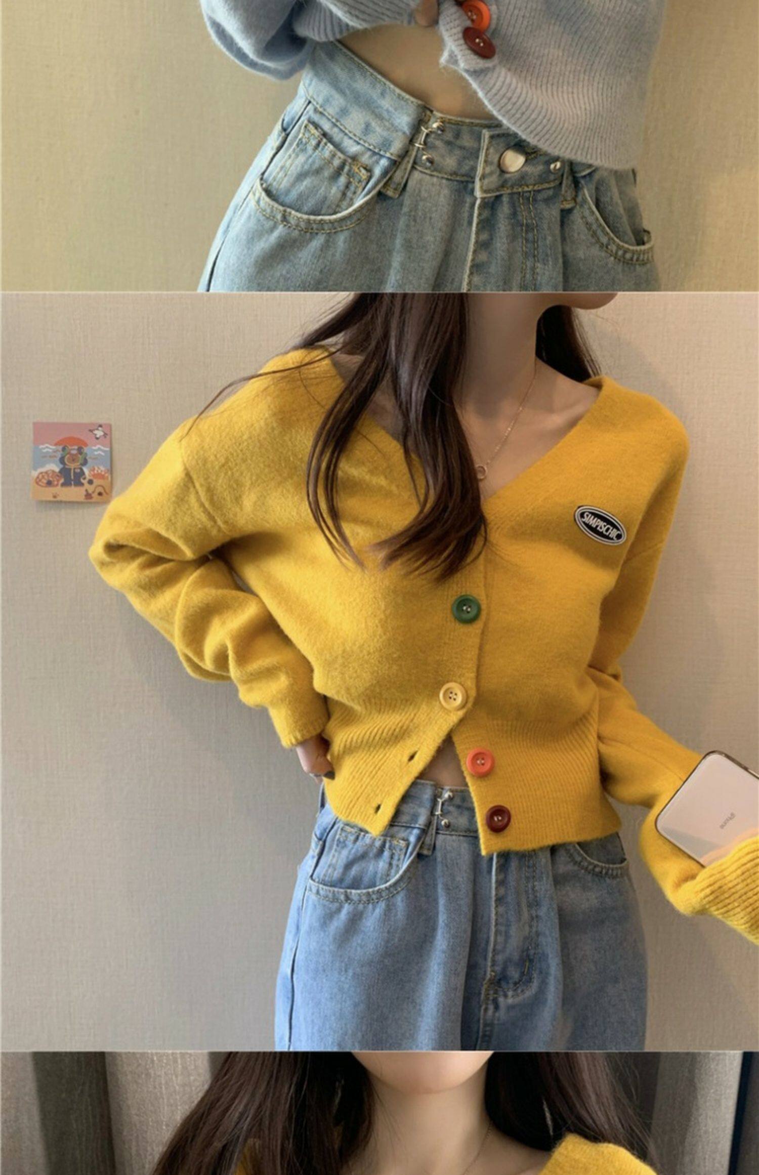 立旭 Ретро кардиган, короткий свитер, французский ретро стиль, высокая талия, подходит для подростков