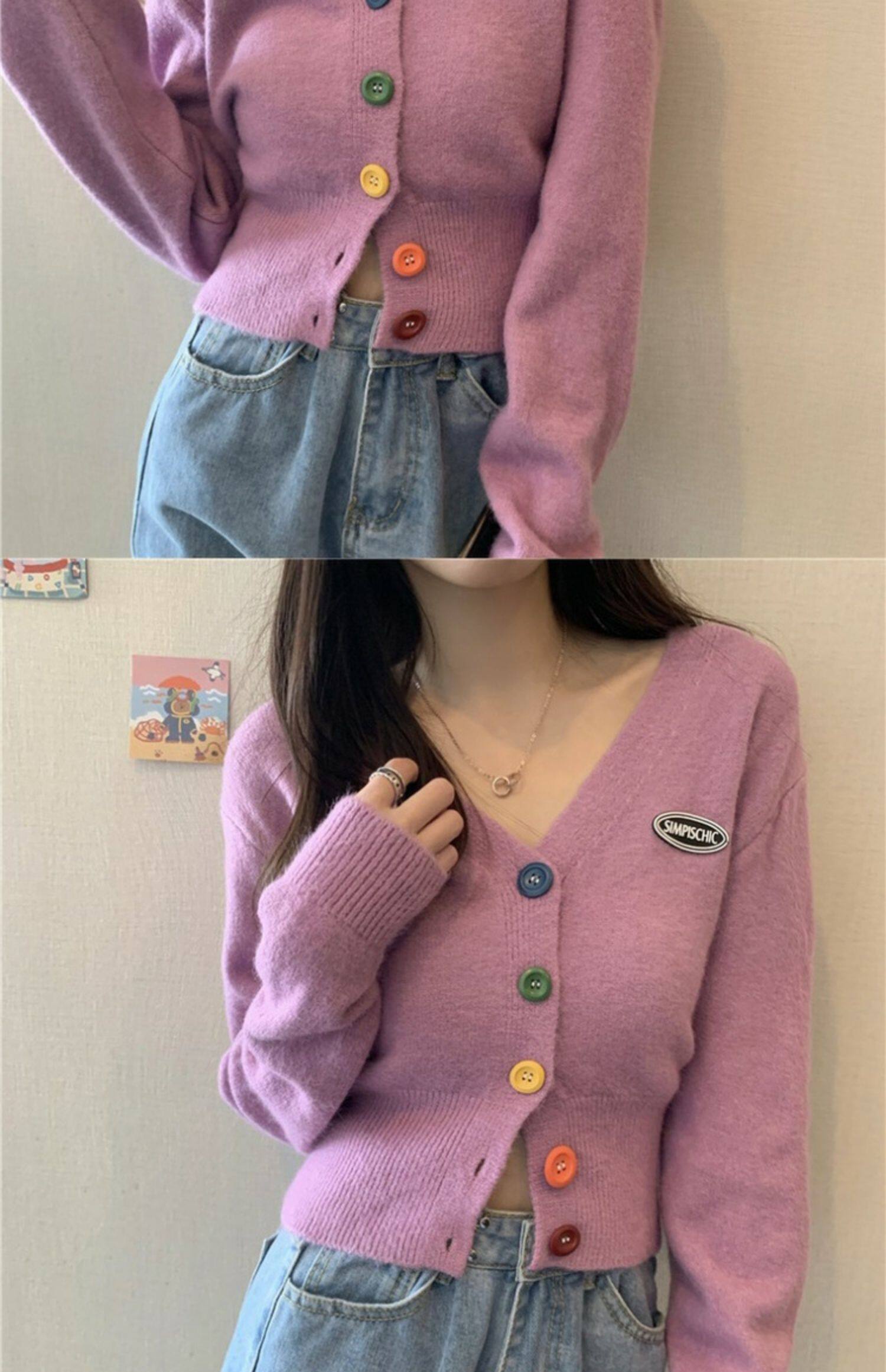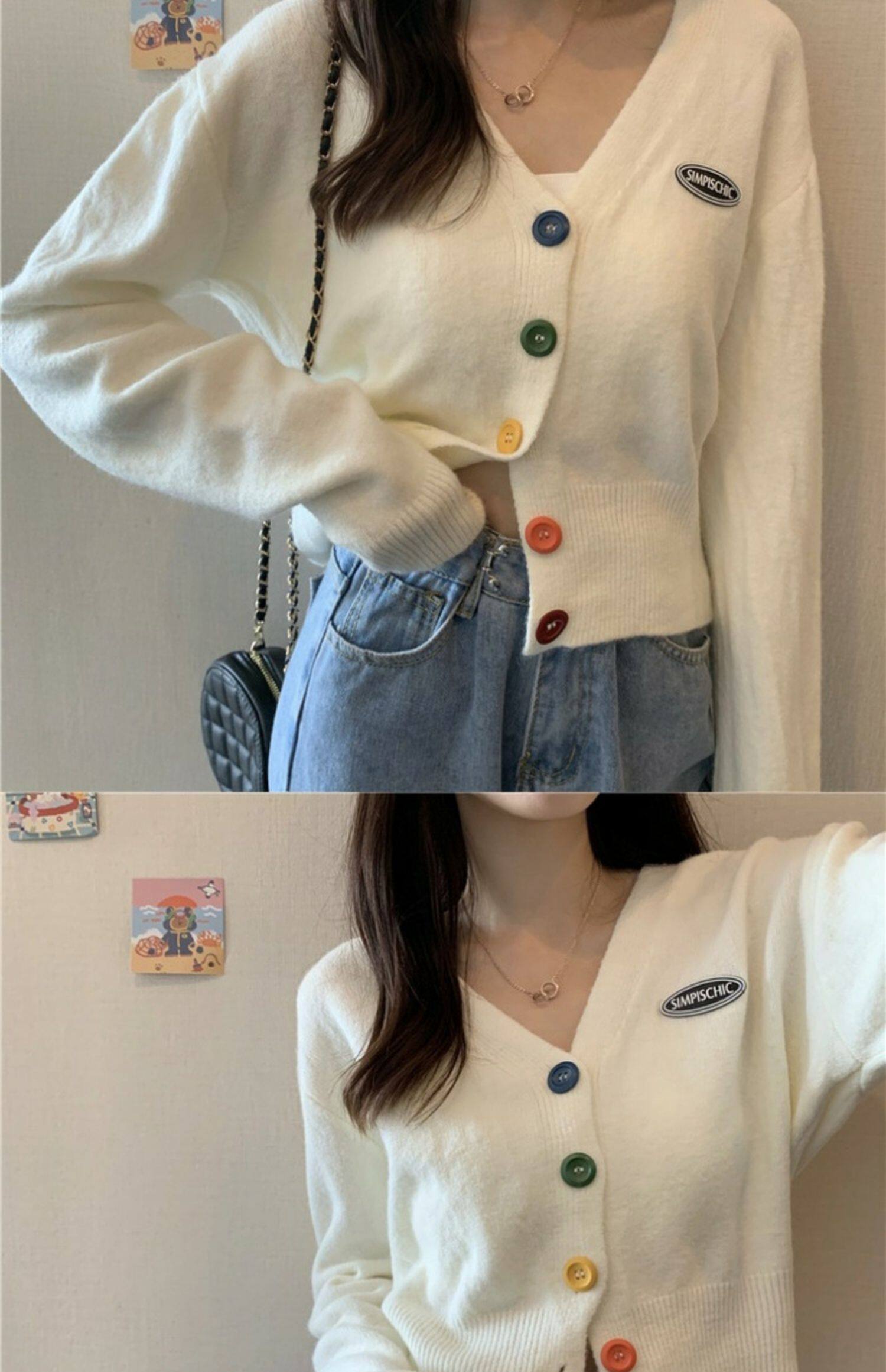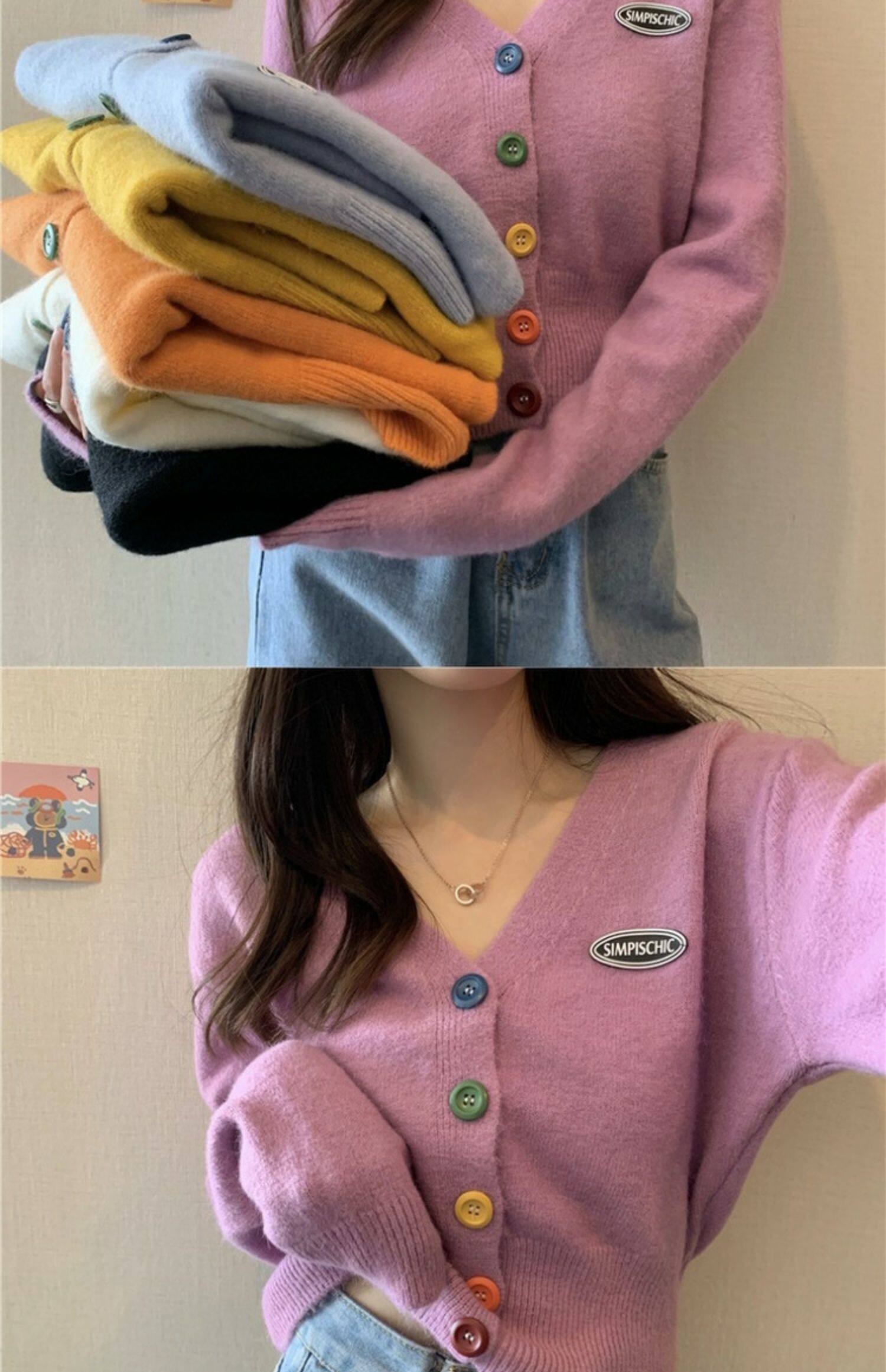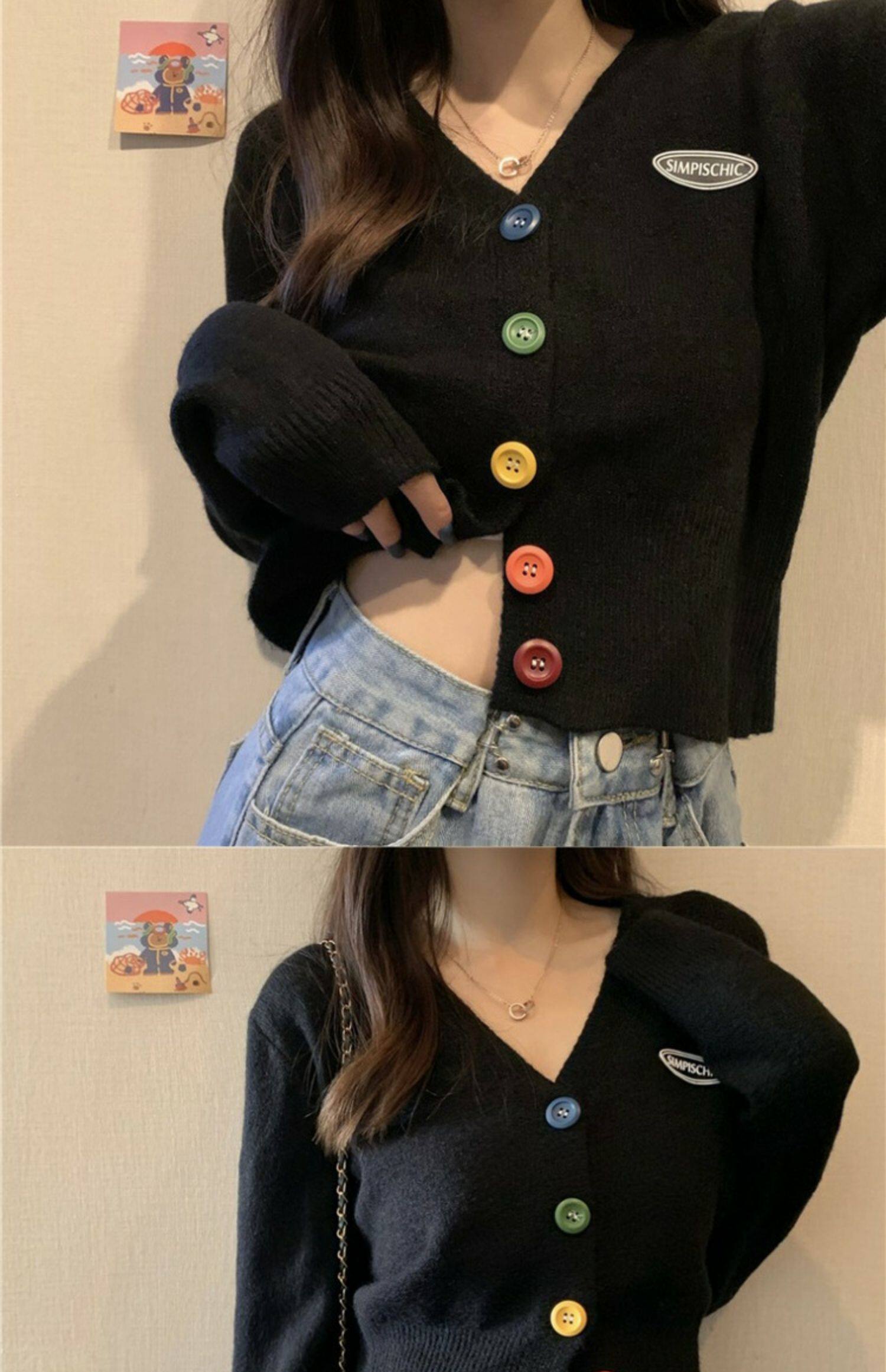 立旭 Ретро кардиган, короткий свитер, французский ретро стиль, высокая талия, подходит для подростков