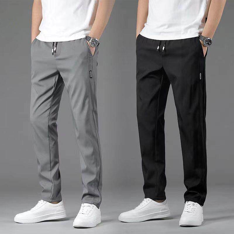 Демисезонные тонкие повседневные брюки, трендовые штаны, на шнурках, свободный прямой крой, эластичная талия