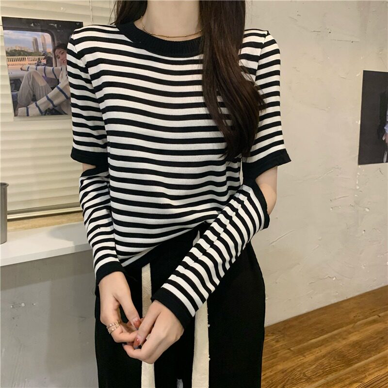 Трикотажный осенний дизайнерский лонгслив, короткие штаны, оверсайз, свободный крой