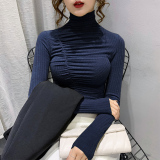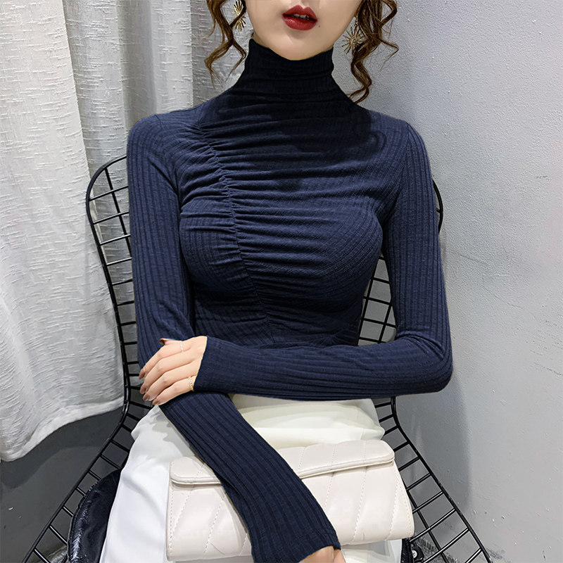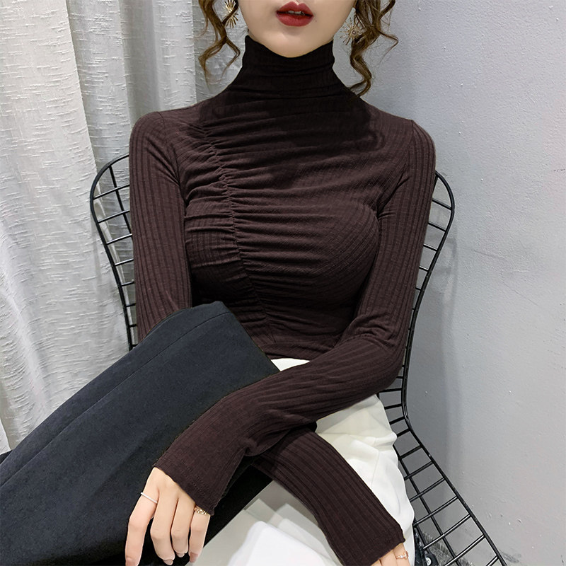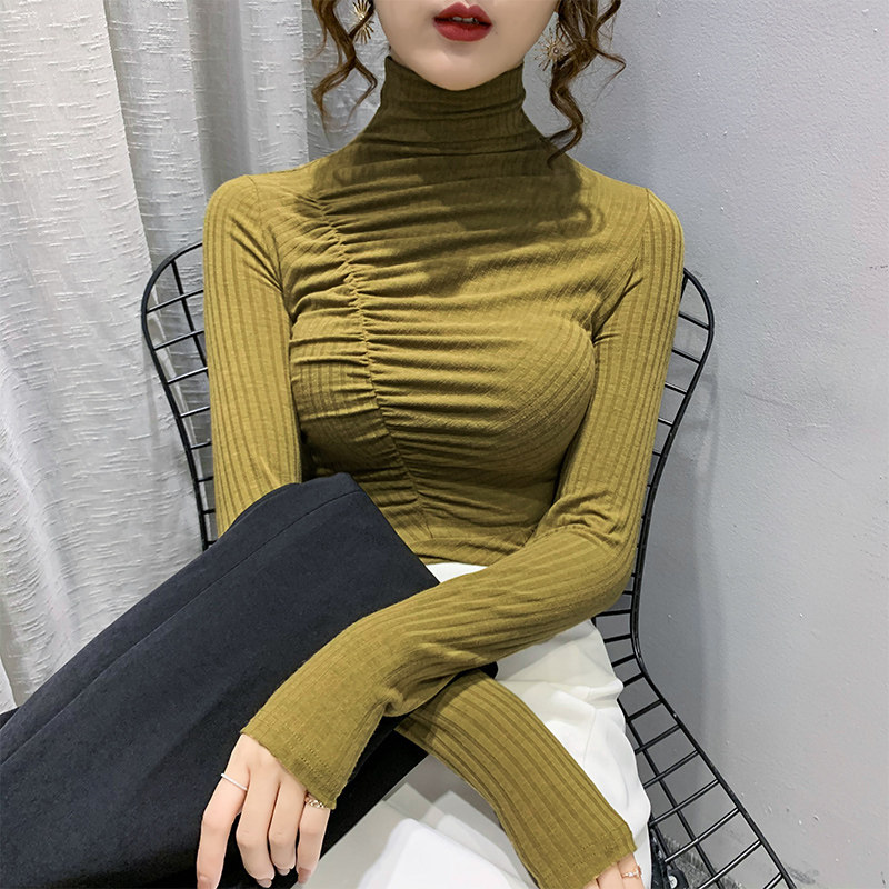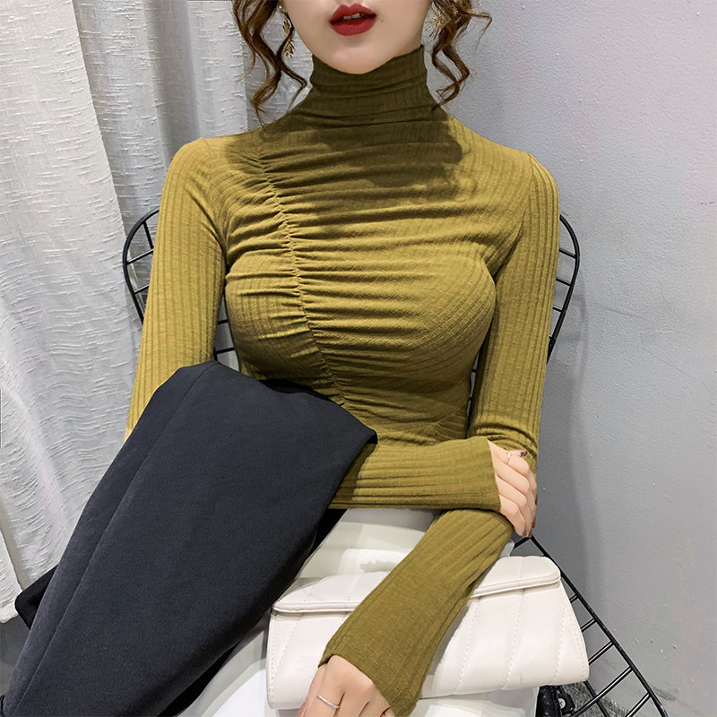 Базовый приятный телу демисезонный лонгслив, высокий воротник, в корейском стиле, коллекция 2023