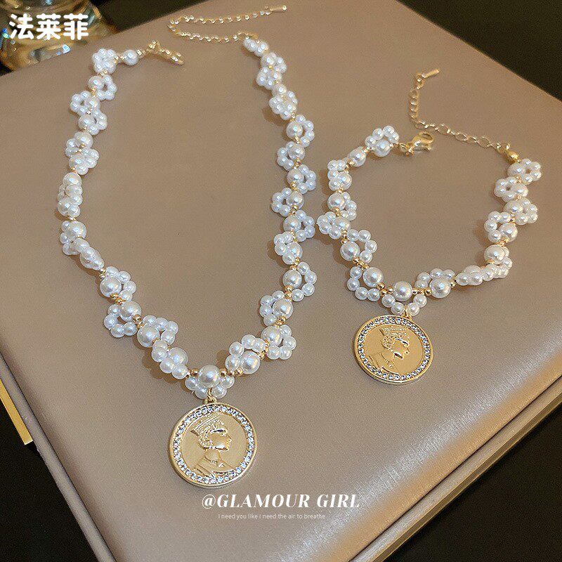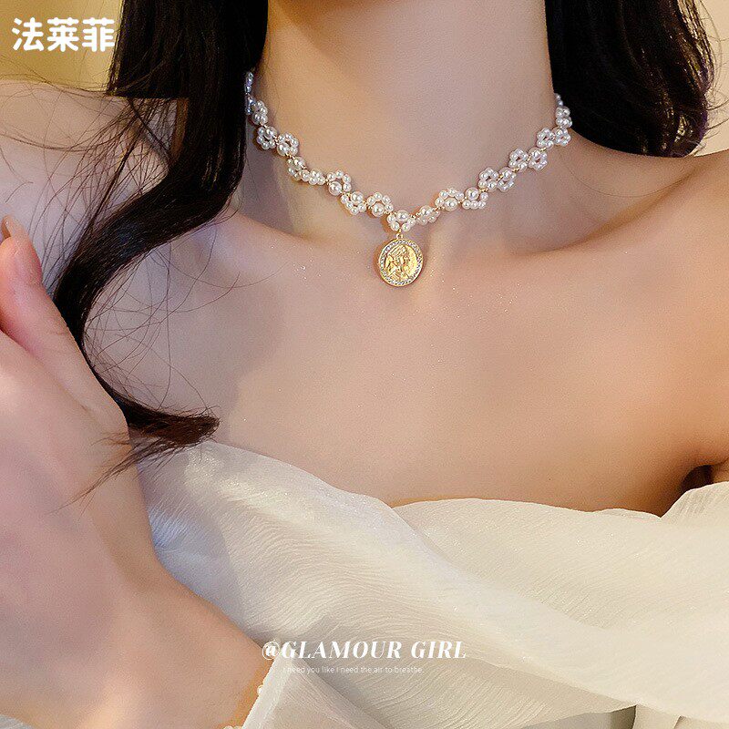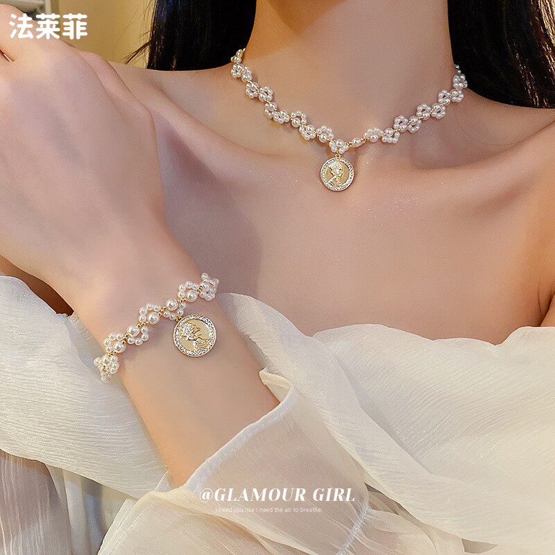 Дизайнерское элегантное небольшое ожерелье с цирконом из жемчуга, французский стиль, изысканный стиль, яркий броский стиль