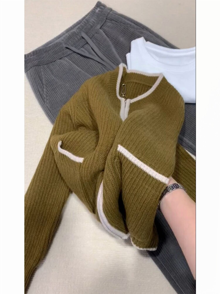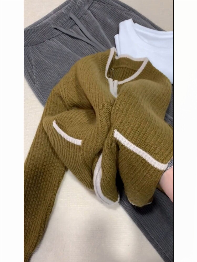 Свитер, японский ретро кардиган, сексуальная куртка с молнией, осенний