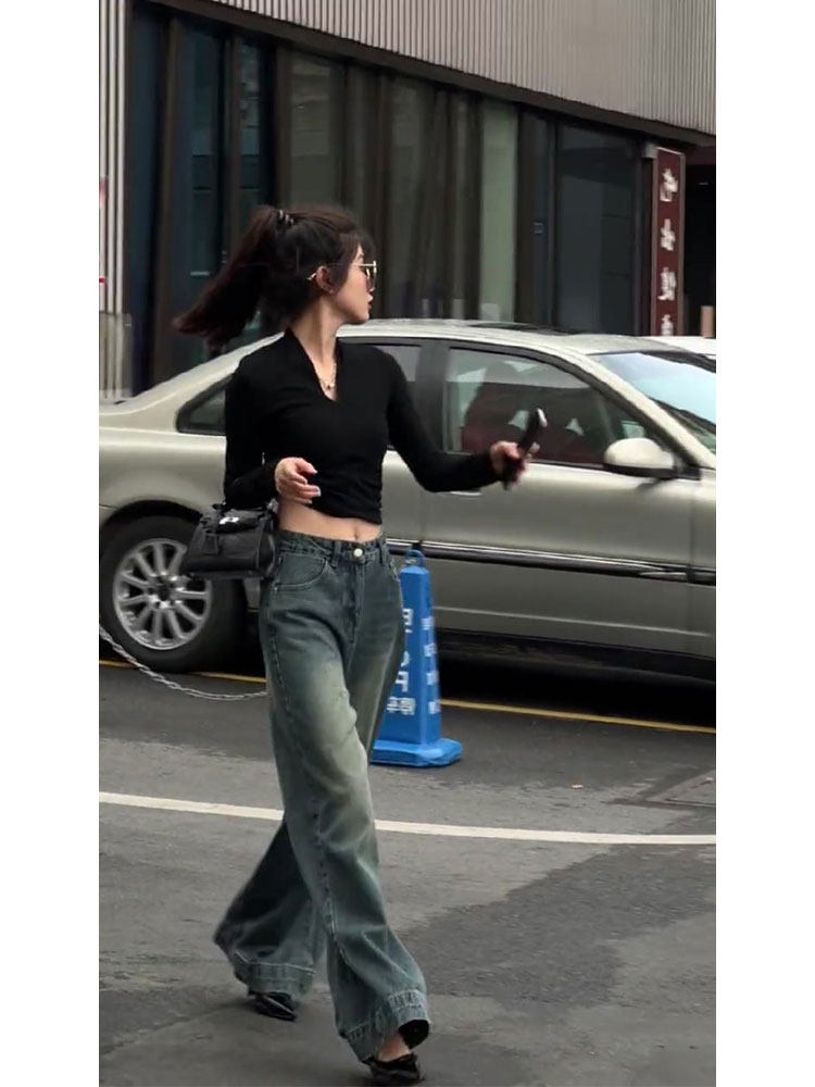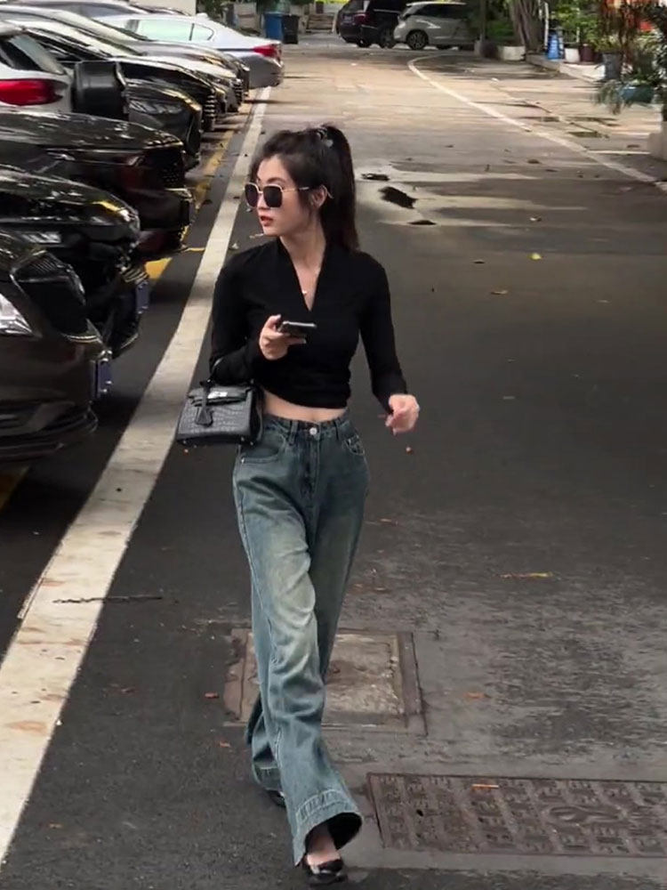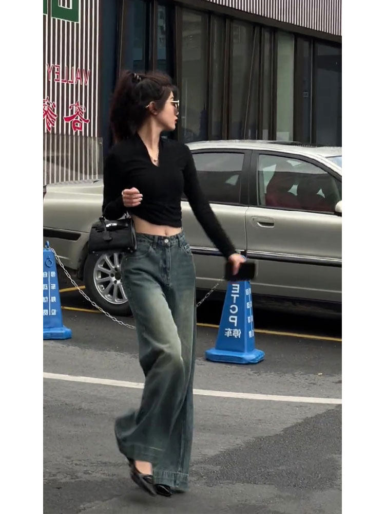 Ретро зимние модные джинсы, штаны, изысканный стиль, высокая талия, свободный прямой крой