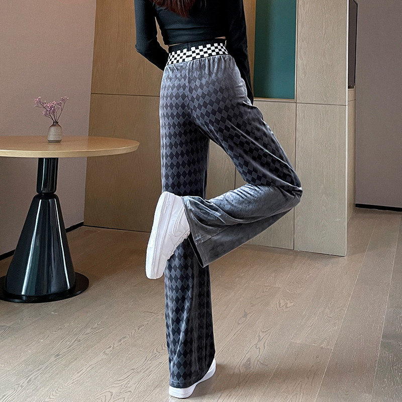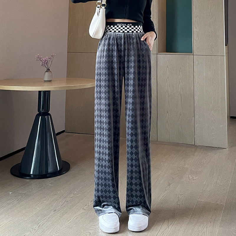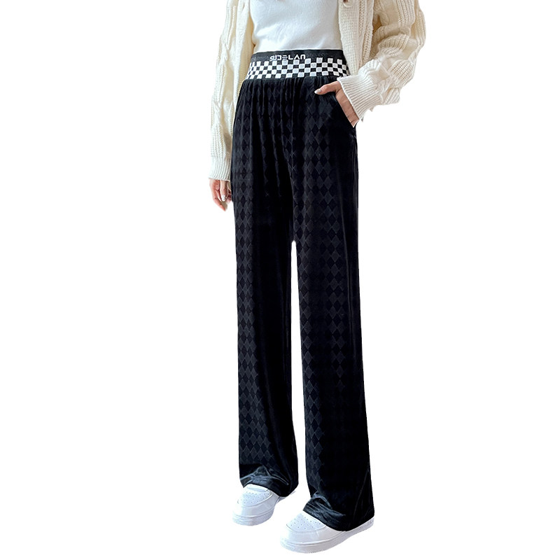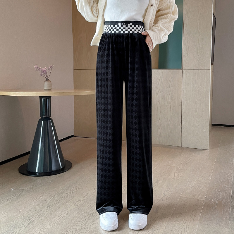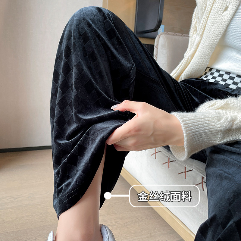 Осенние демисезонные бархатные штаны для отдыха, высокая талия, коллекция 2023, свободный прямой крой