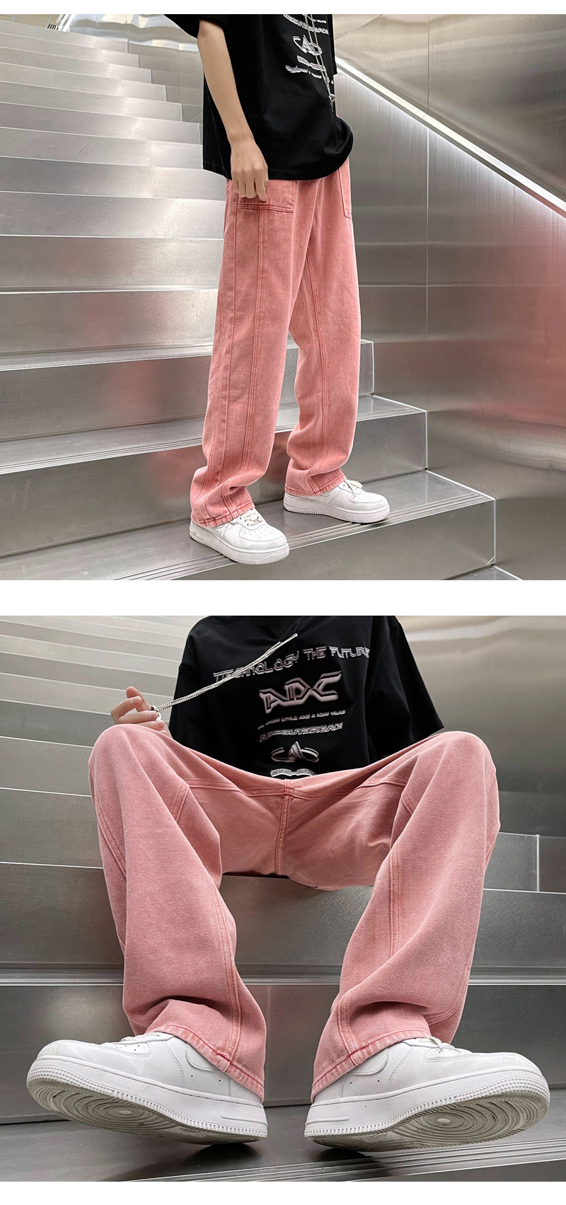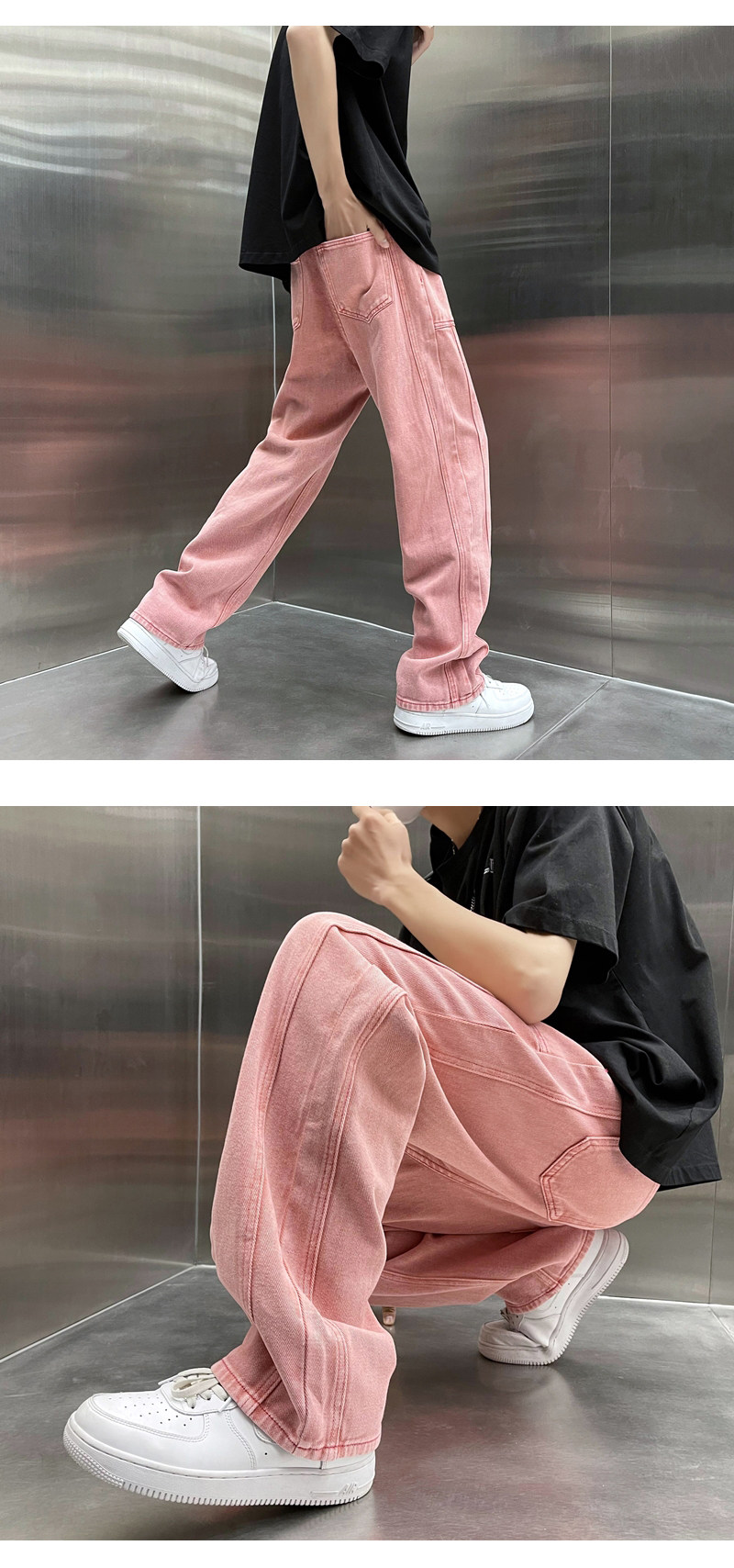 Брендовые штаны, розовые прямые свободные джинсы, оверсайз
