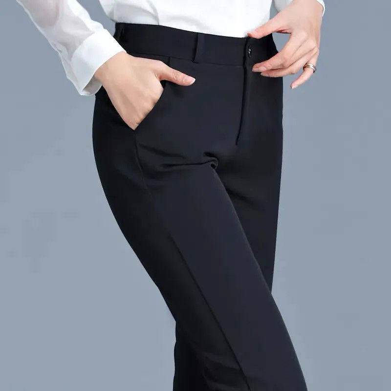 Эластичные осенние приталенные штаны, высокая талия, свободный прямой крой, в корейском стиле, по фигуре