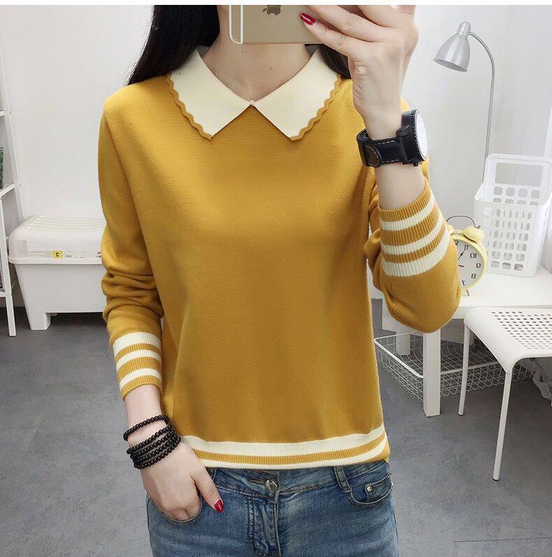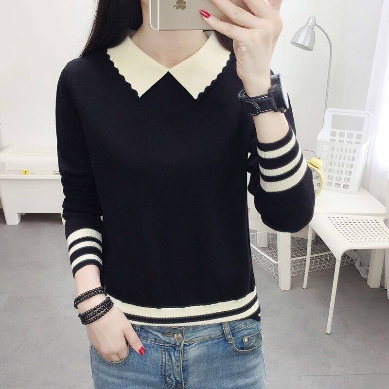 Трикотажный лонгслив, свитер, базовая приятная телу зимняя тонкая кукла для школьников, осенний, кукольный воротник