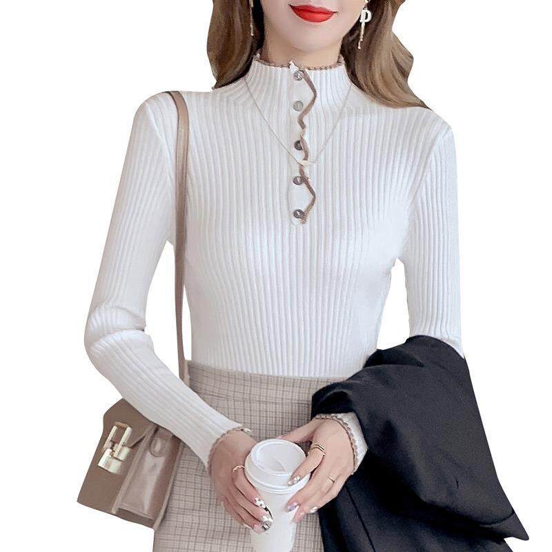 Осенний ретро трикотажный свитер, модный базовый приятный телу лонгслив, в корейском стиле
