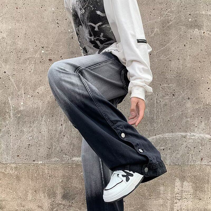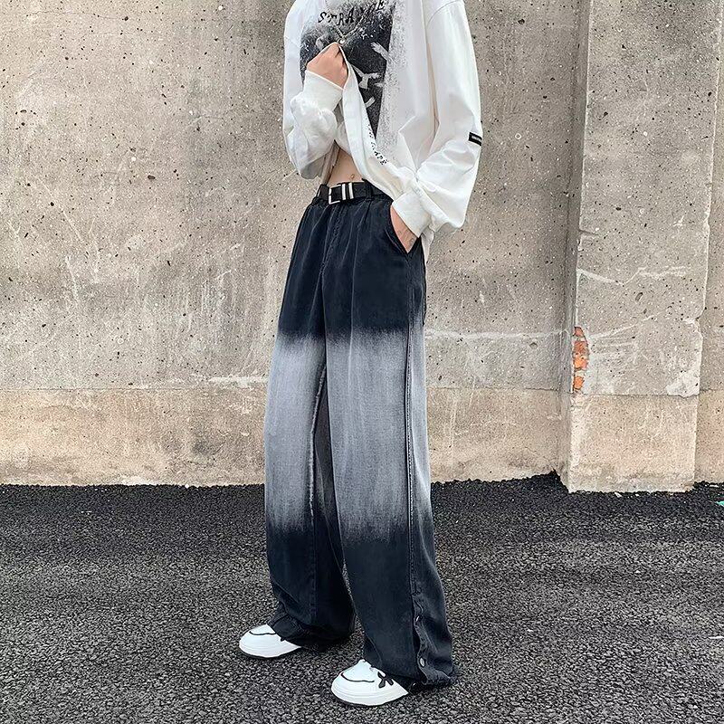 Небольшие дизайнерские штаны, прямые свободные джинсы, тренд сезона, градиент