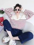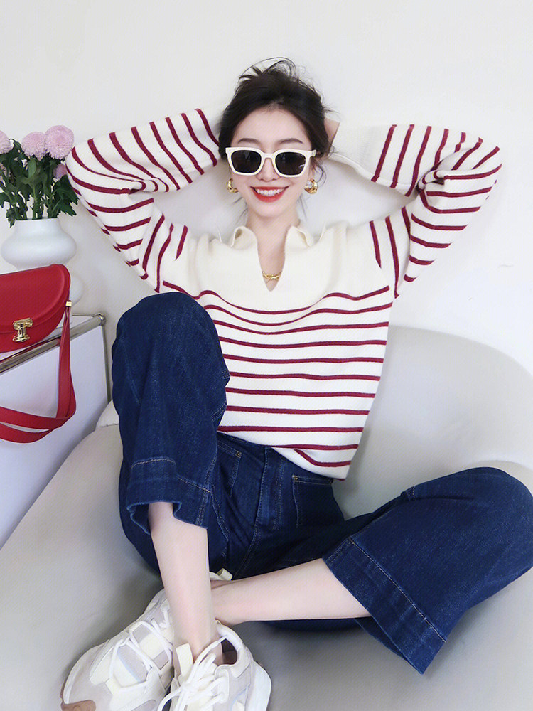 Демисезонный сексуальный лонгслив, трикотажный свитер, V-образный вырез, воротник поло