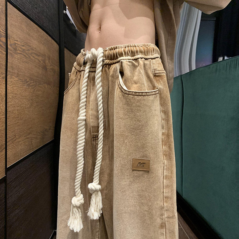 Цветные штаны, джинсы, в американском стиле, свободный прямой крой, эластичная талия, оверсайз, европейский стиль, на шнурках