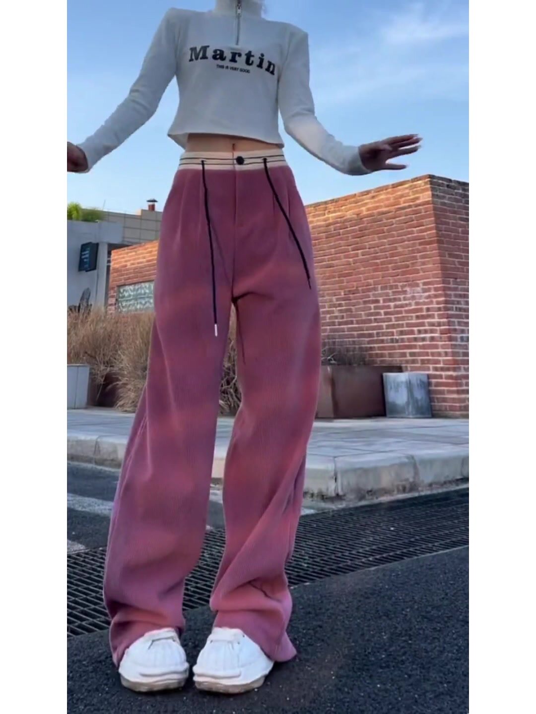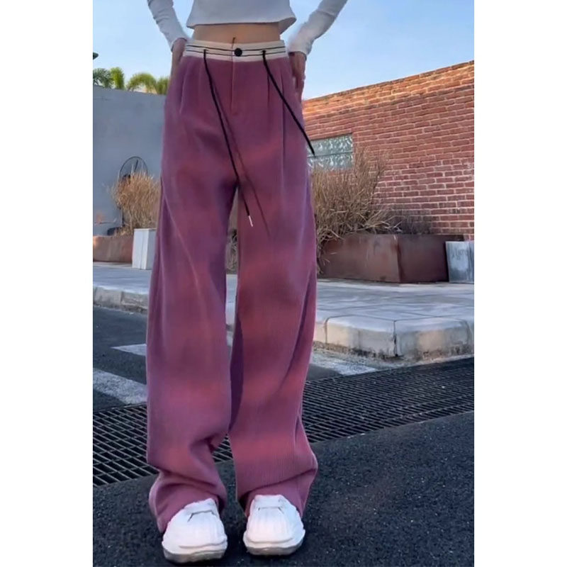 Вельветовые осенние утепленные розовые штаны для отдыха, 2023 года, высокая талия