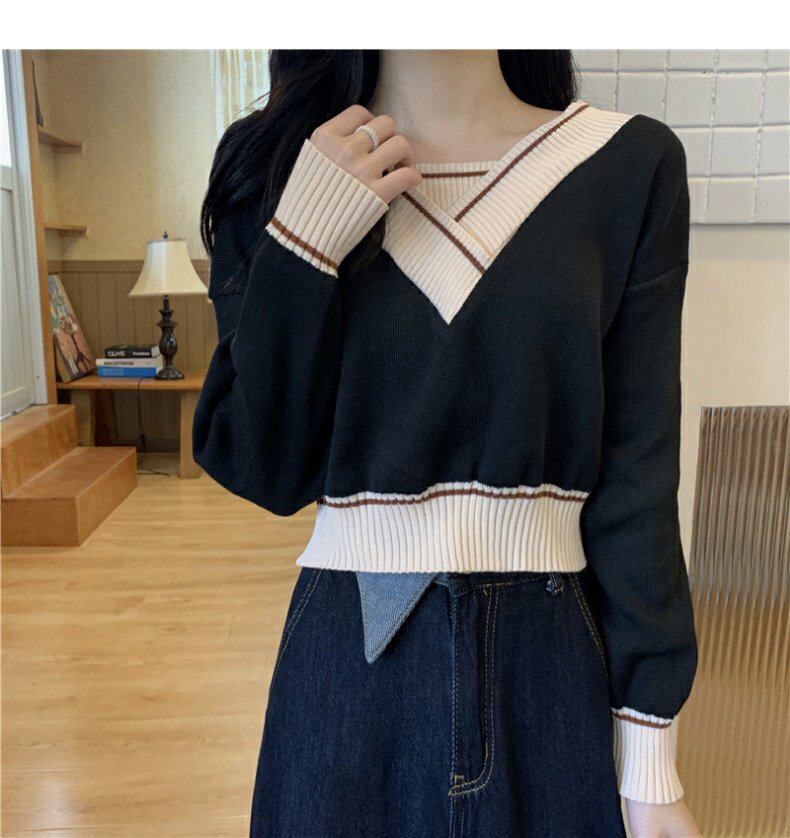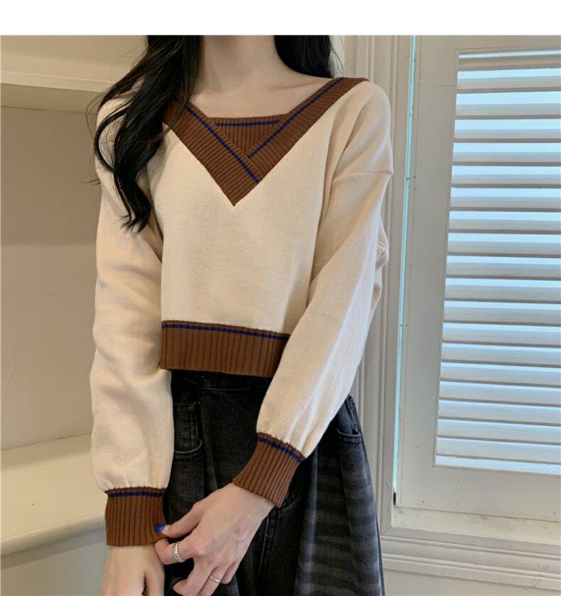Трикотажный комплект, сексуальный лонгслив, V-образный вырез