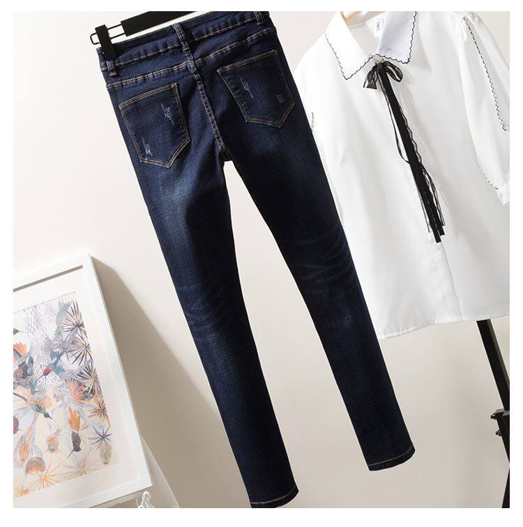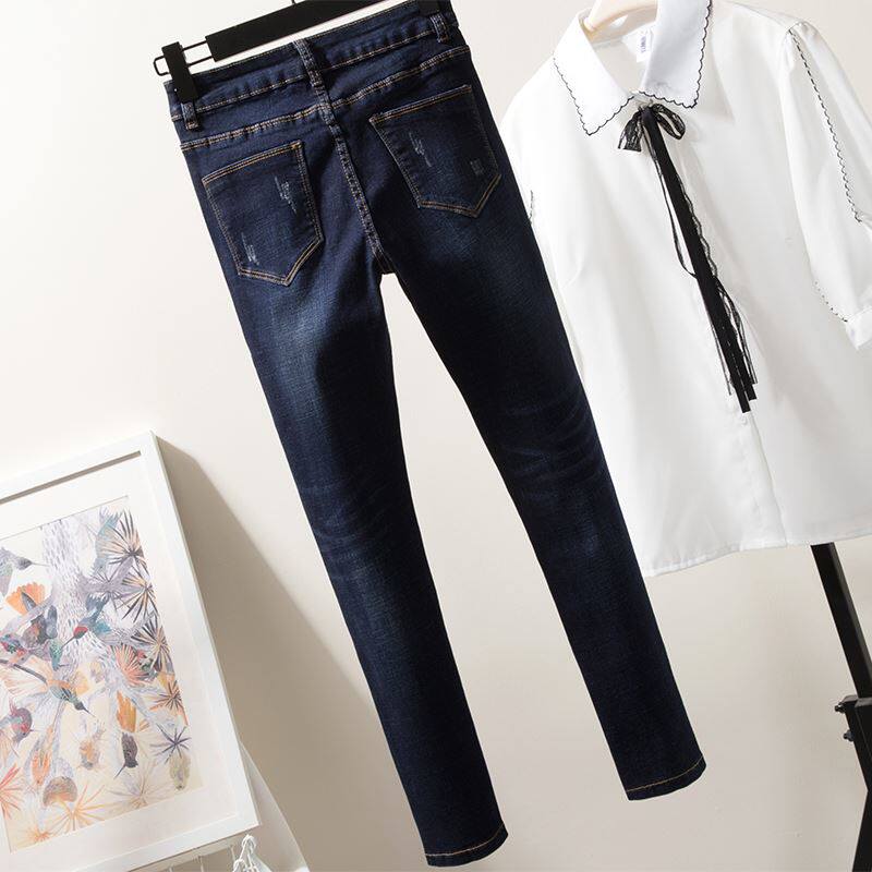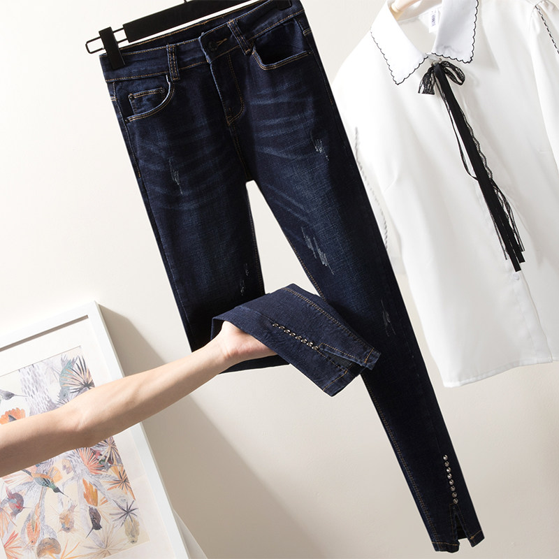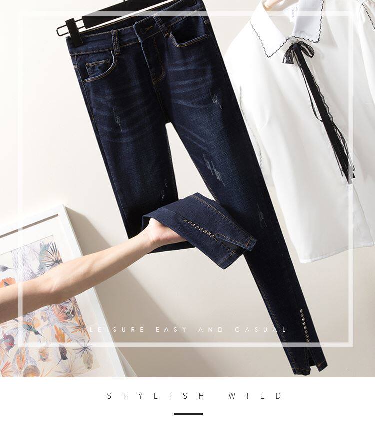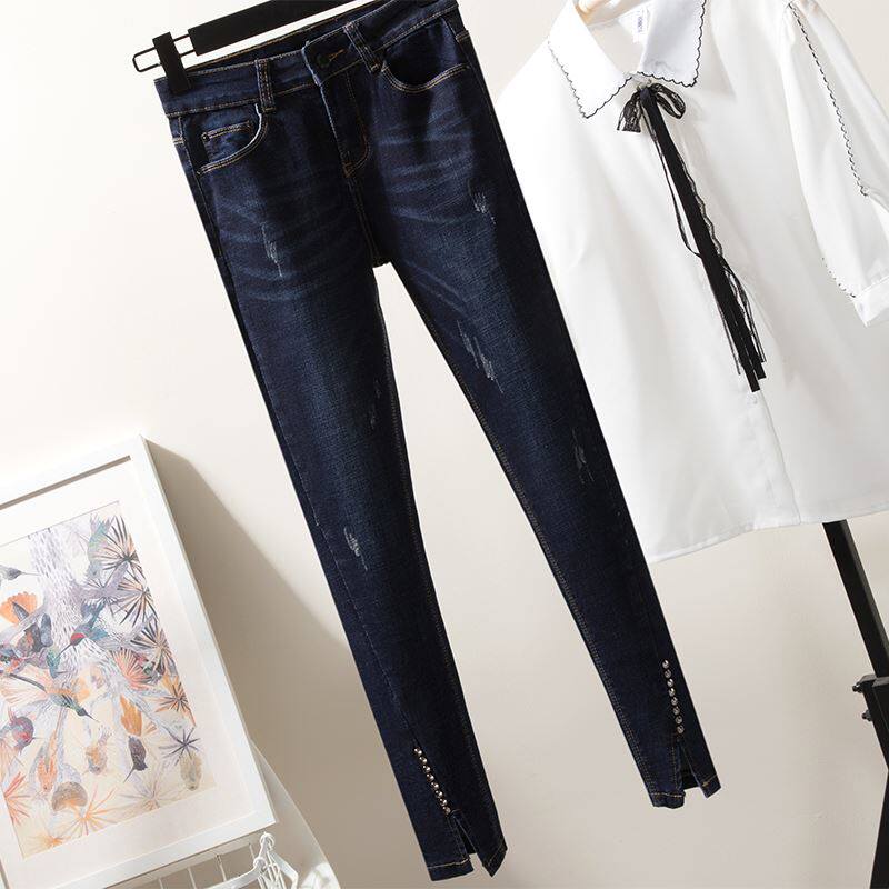Демисезонные модные осенние штаны, джинсы, подходит для полных девушек, популярно в интернете, большой размер