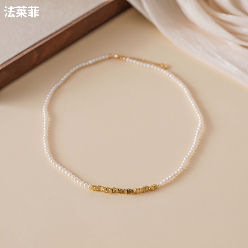 Геометричное ретро небольшое ожерелье из жемчуга, дизайнерская универсальная цепочка до ключиц, браслет, комплект, французский ретро стиль, простой и элегантный дизайн