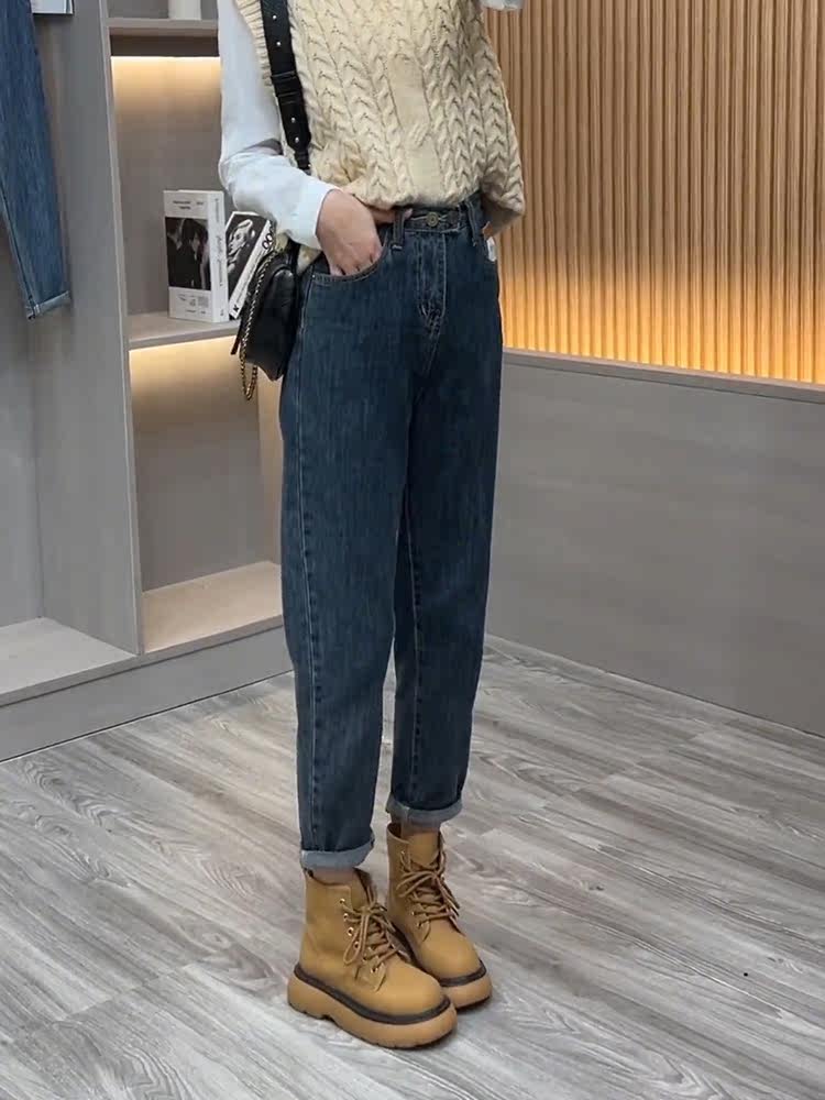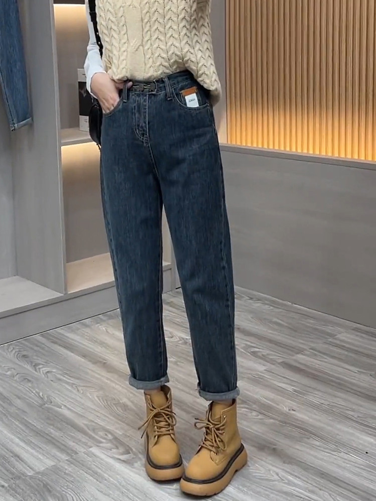 Эластичные осенние тонкие джинсы, бархатные дизайнерские штаны, высокая талия, 2023 года, тренд сезона, по фигуре