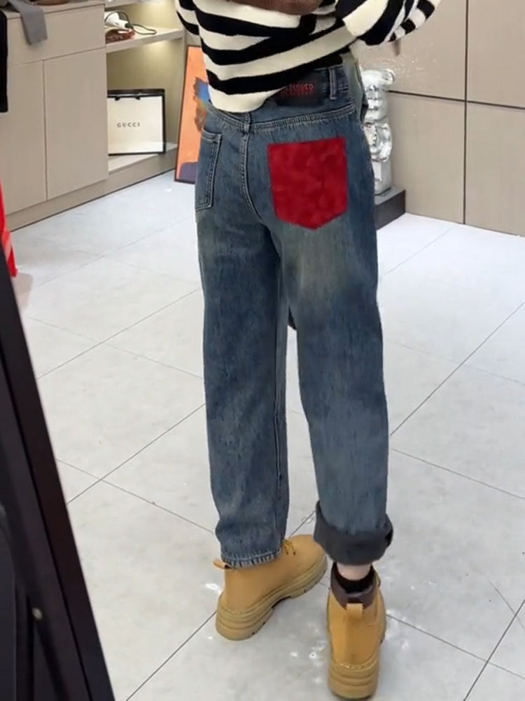 Весенние осенние штаны, сексуальные джинсы, высокая талия, по фигуре, свободный прямой крой