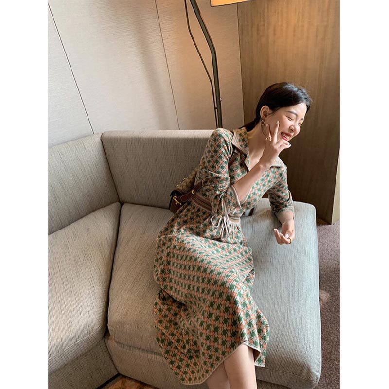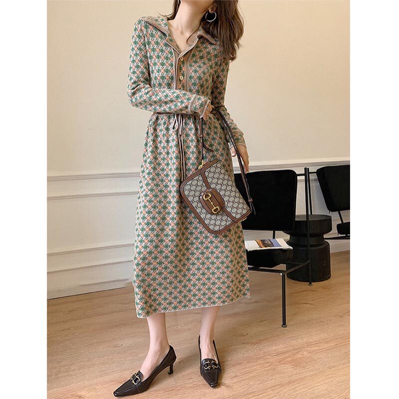 Шерстяное весеннее осеннее трикотажное платье, модный свитер, базовый лонгслив, французский стиль