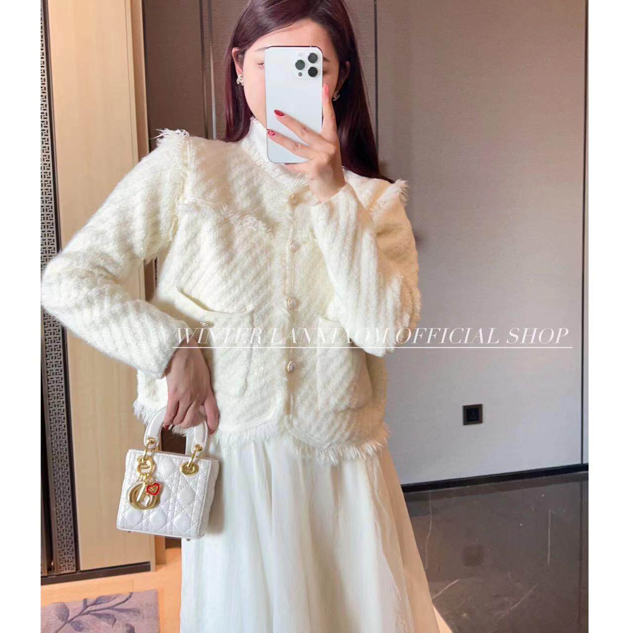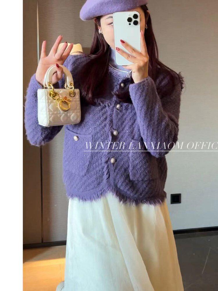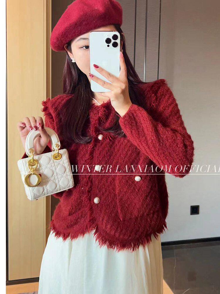 Трикотажный свитер с круглым воротником с кисточками, булавка, кардиган, коллекция 2023, городской стиль, в стиле Шанель