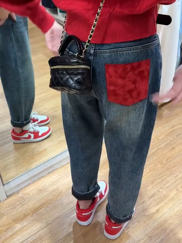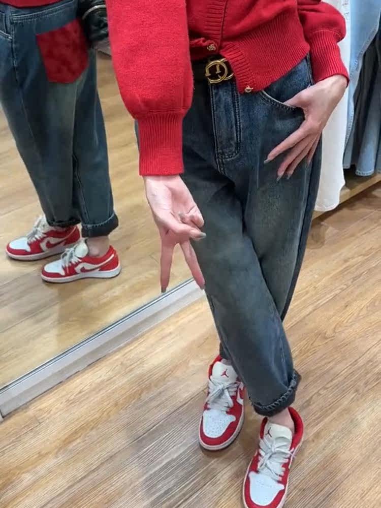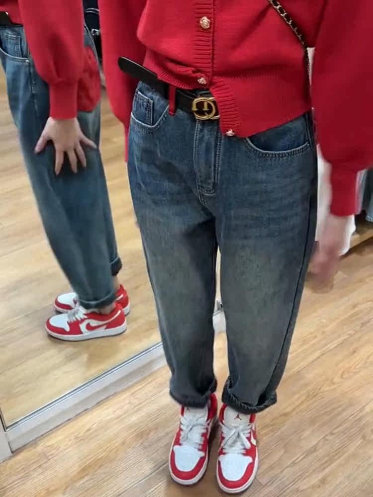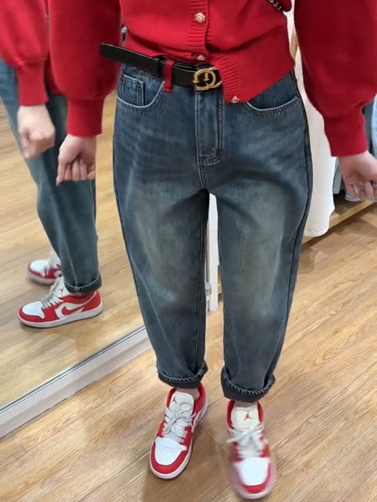 Флисовые ретро демисезонные джинсы, небольшие штаны, высокая талия, свободный прямой крой, подходит для подростков