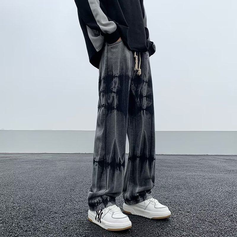 Джинсы, штаны, градиент, на шнурках, оверсайз