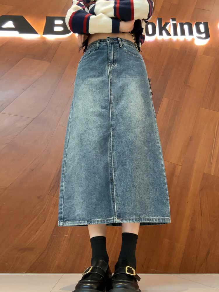 Весенняя осенняя длинная джинсовая юбка, по фигуре, большой размер, подходит для полных девушек, высокая талия, А-силуэт