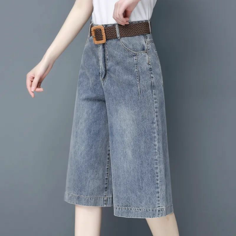 Джинсовые летние качественные штаны, высокая талия, свободный крой
