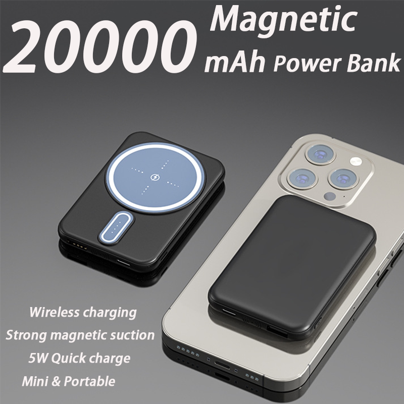 Беспроводной блок питания 20000 мАч, быстрая зарядка, магнитное мини-портативное зарядное устройство, внешний аккумулятор с выходом USB для iPhone12/13/14