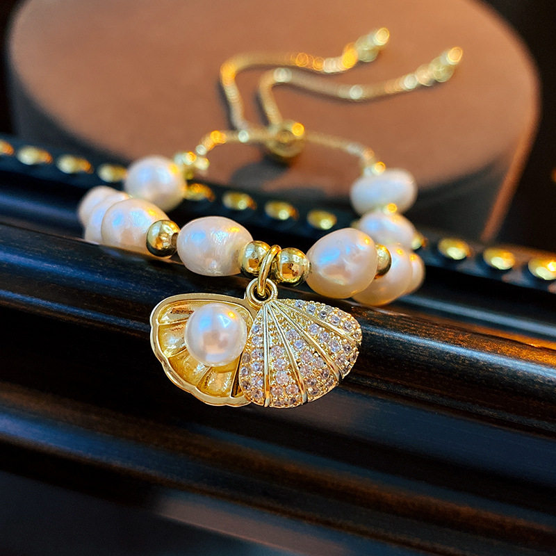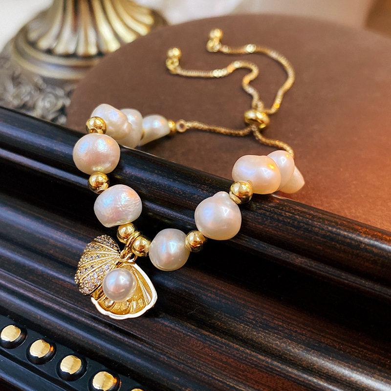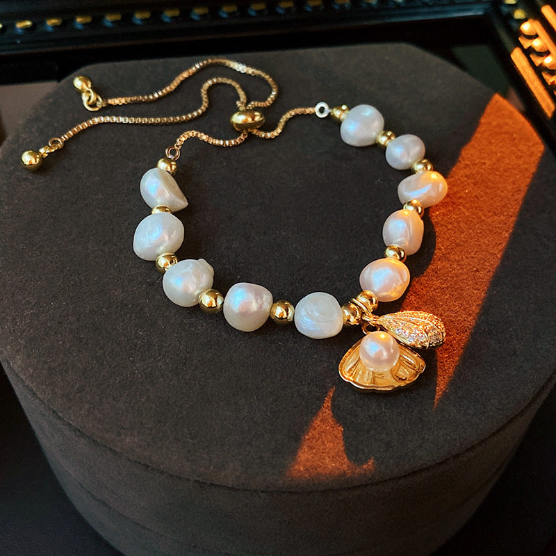 Ретро небольшой дизайнерский браслет из жемчуга, металлический аксессуар, тренд сезона