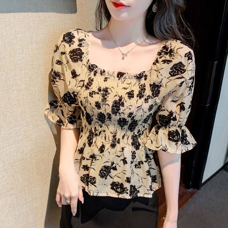 Цветообразные в форме цветов. Повседневная шифоновая женщина летняя Новая корейская версия модной и универсальной и универсальной охраны