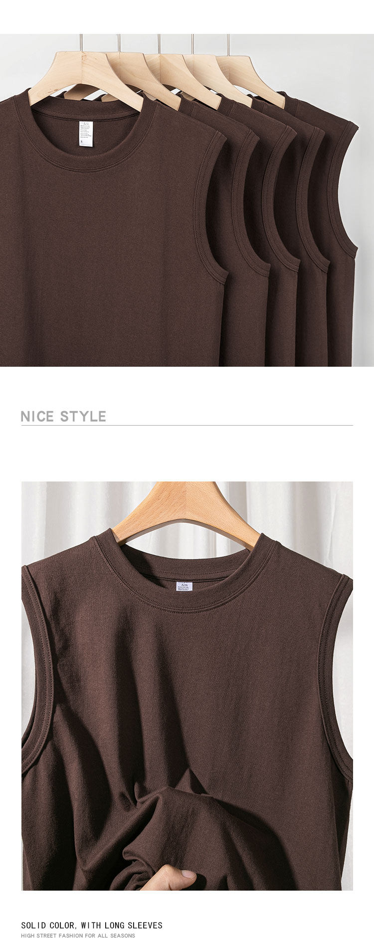 Шоколадная японская хлопковая цветная майка без рукавов, широкая цветовая палитра, оверсайз