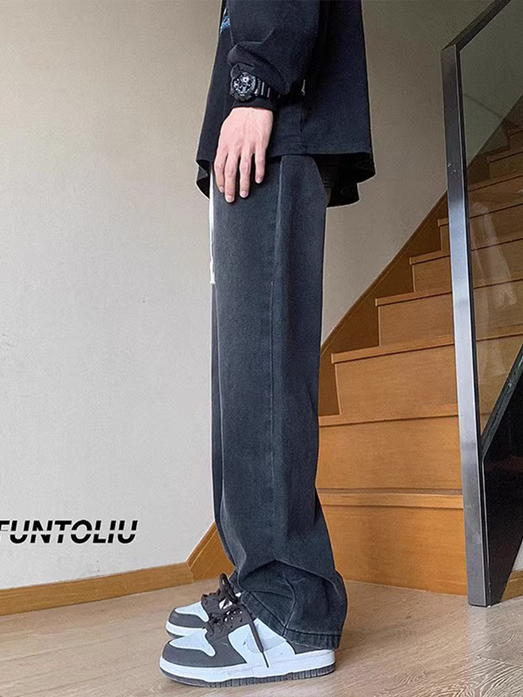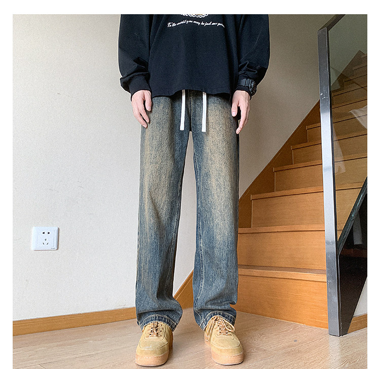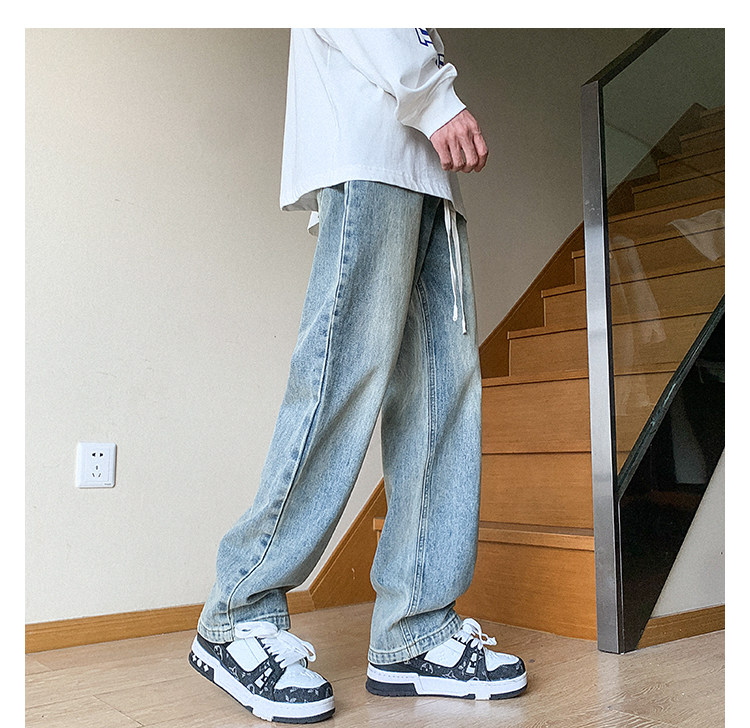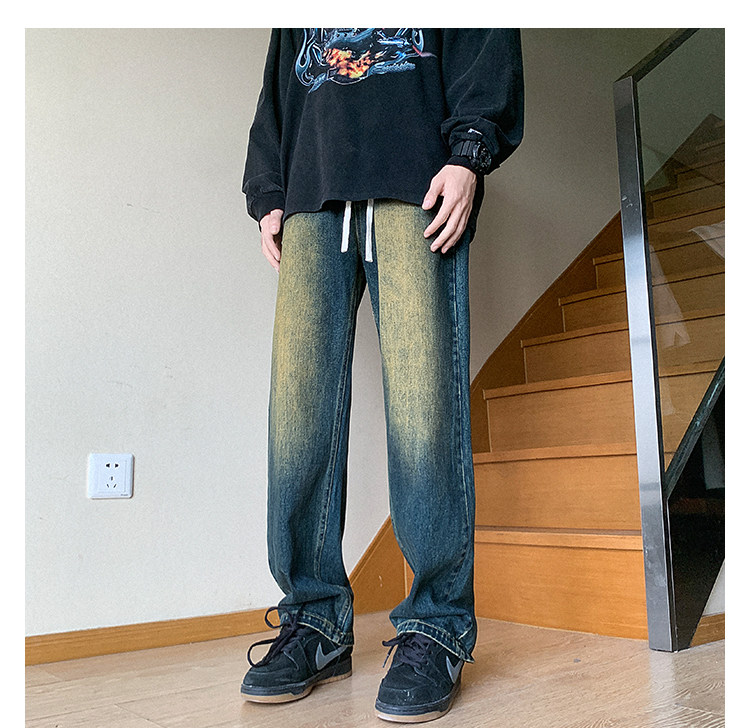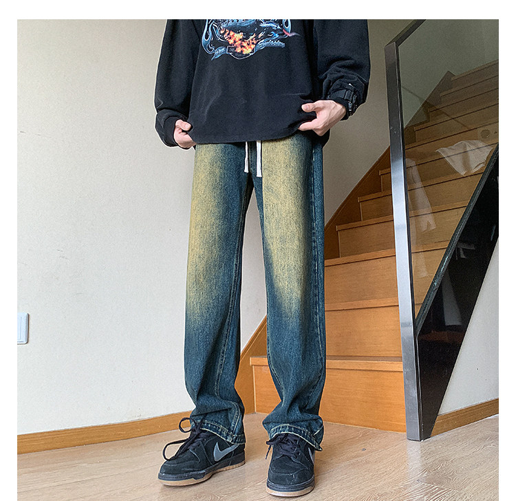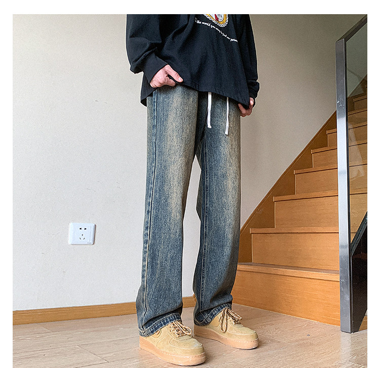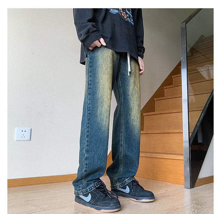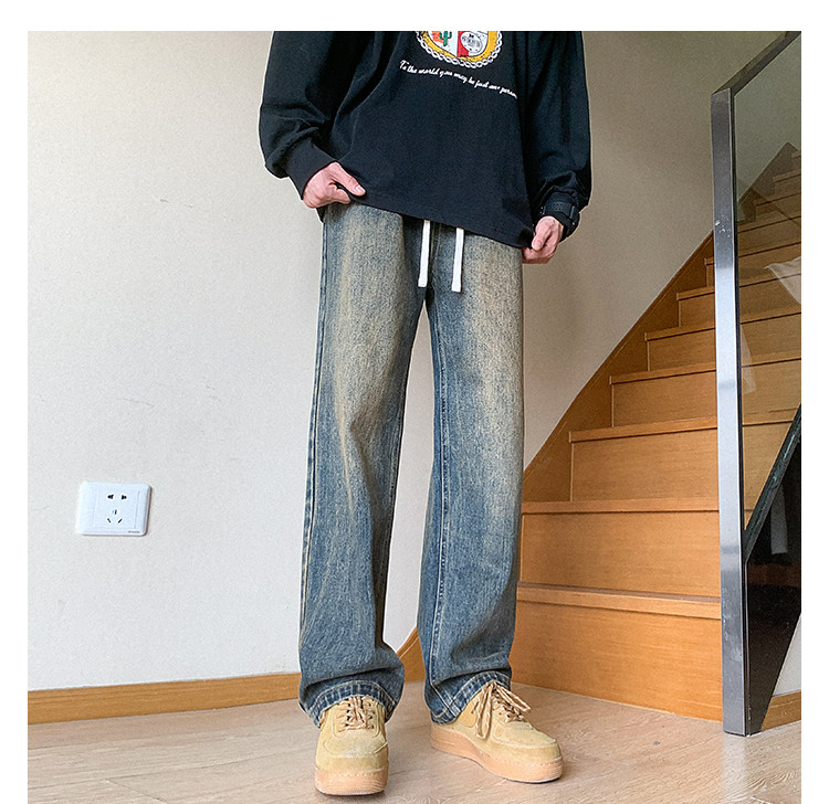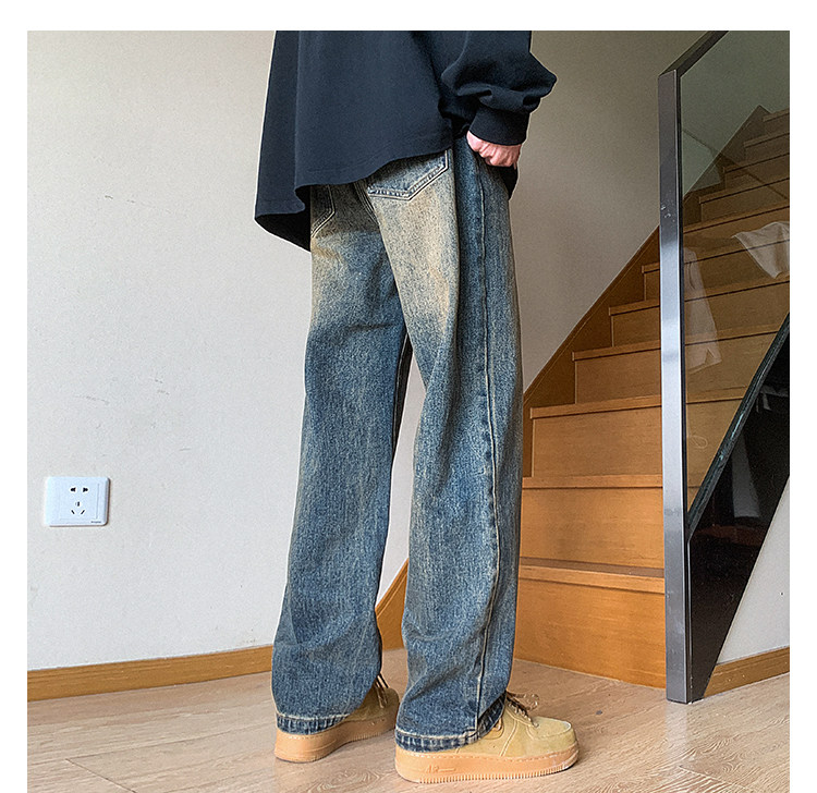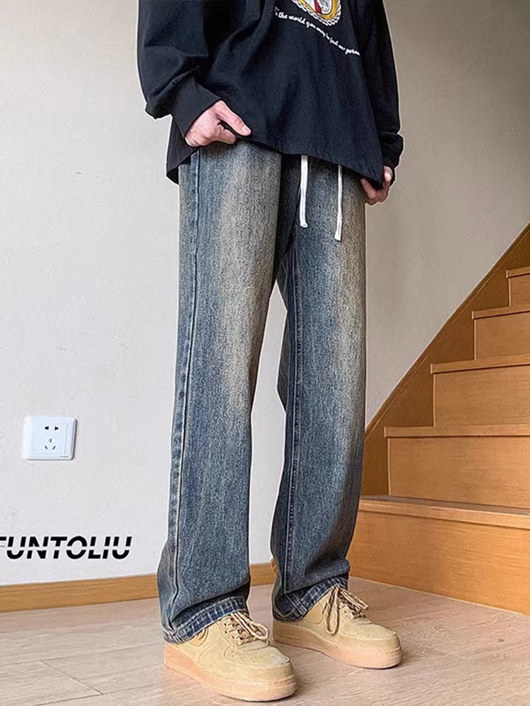 Ретро джинсы, штаны, в американском стиле, осенние, свободный прямой крой
