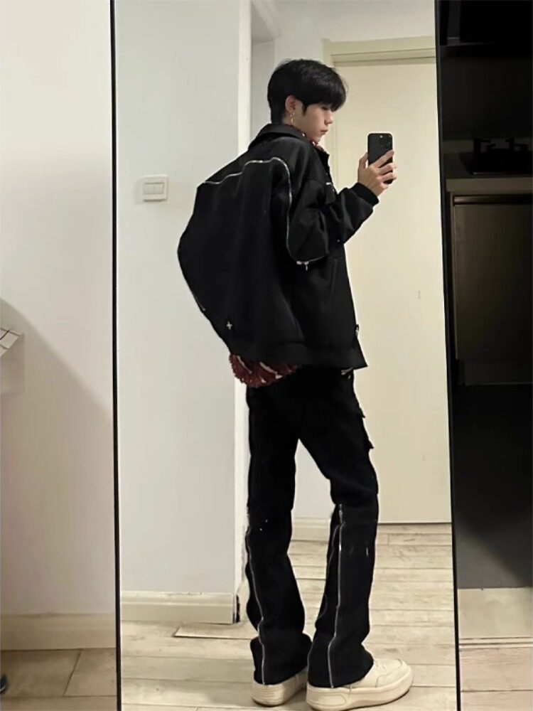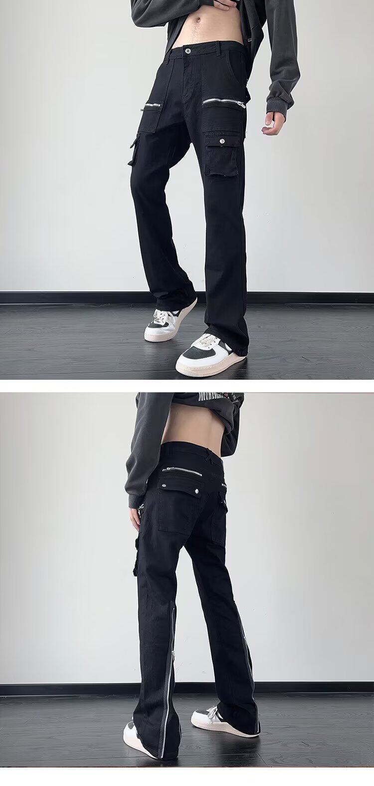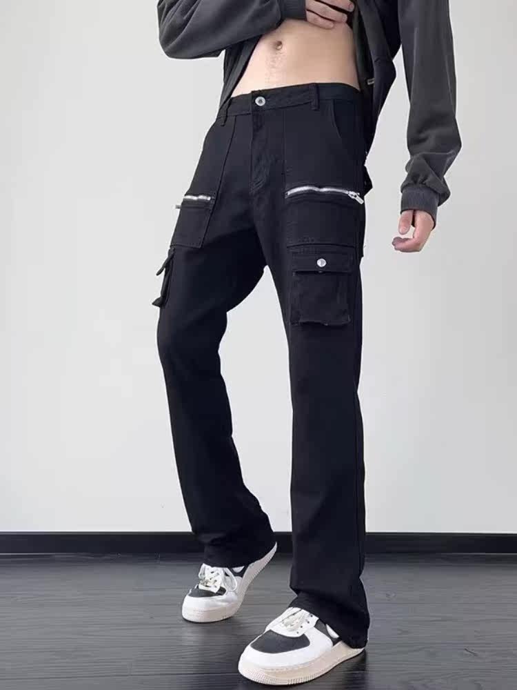 Черные осенние джинсы с молнией, сексуальные штаны, по фигуре, свободный прямой крой