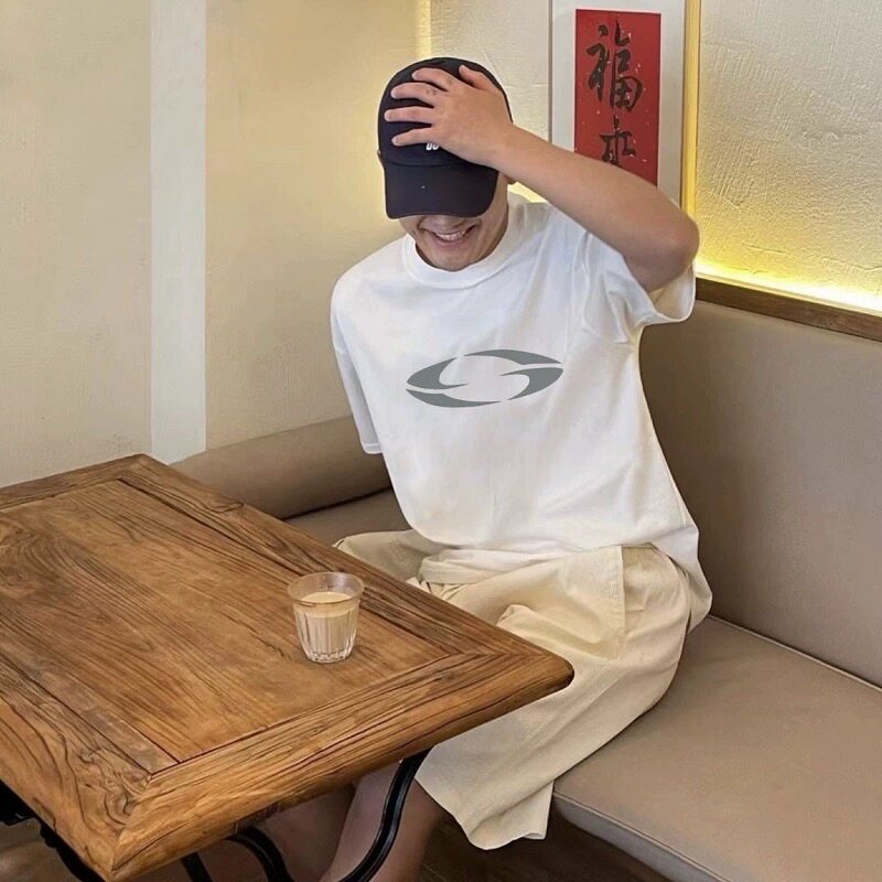 Широкая бренда модного бренда Wide 설레인다 American Недавно рекомендуется коротко -лишерный T -мала -майки мужчины и женщины с той же модель