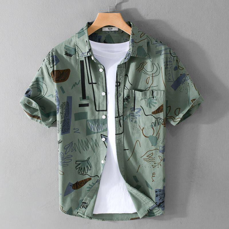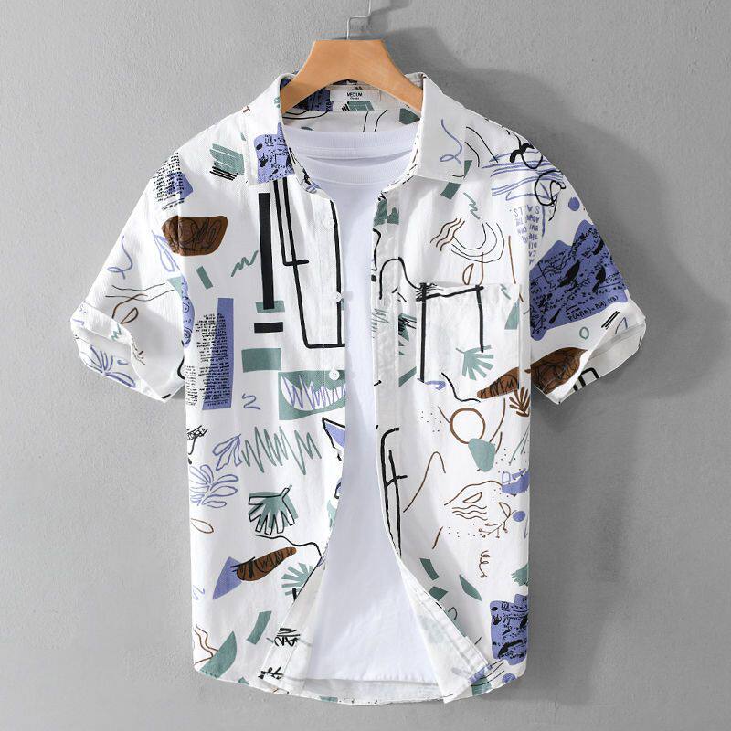 Летняя пляжная комфортная трендовая свежая рубашка для отдыха, короткий рукав, оверсайз